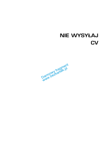 NIE WYSYŁAJ CV t en m l g fra tek.p y r ow ka rm.bez a D ww w W serii „Recepta na biznes” Jeffrey J. Fox napisał następujące książki: 1. Jak zostać mistrzem marketingu, czyli o zasadach, dzięki którym dzwoni kasa 2. Jak zarobić duże pieniądze w swojej firmie, czyli o świętych zasadach ludzi biznesu 3. Jak być wielkim szefem, czyli jak znaleźć najlepszych pracowników t 4. Jak zostać szamanem sprzedaży, en m l czyli jak sprowadzić doafirmy g .p deszcz pieniędzy r y f artek w o k 5. Nie wysyłaj aCV, rm.bez D czyli jak sięwdostać ww do dobrej firmy 6. Jak zostać CEO, czyli o zasadach dochodzenia na szczyty 7. Sekrety wielkich handlowców, czyli jak dokonywać tego, czego inni nie mogą Więcej informacji o autorze na stronie: www.foxandcompany.com Jeffrey J. Fox NIE WYSYŁAJ CV t en m l g fra tek.p y r ow ka rm.bez a D ww w czyli jak się dostać do dobrej firmy Oficyna Wydawnicza „Vocatio” Warszawa Tytuł oryginału: Don’t Send A Resume Przekład: Teresa Kowalska Redakcja: Irena Kanicka Redakcja techniczna: Małgorzata Biegańska-Bartosiak Projekt okładki: Joanna Złonkiewicz Korekta: Renata Borkowska Copyright © 2001 by Jeffrey J. Fox All rights reserved. First published by Hyperion.nt me l The Polish translation rights published ragekin.pagreement with y f rtInc., Doris S. Michaels Literary w Agency, New York, USA o zka rm Copyright for the Polish edition © .2006 be by Oficyna Wydawnicza „Vocatio”. Dtoawthe w Polish All rights edition reserved w Wszelkie prawa do wydania polskiego zastrzeżone. Książka ani żadna jej część nie może być przedrukowywana ani w jakikolwiek inny sposób reprodukowana czy powielana mechanicznie, fotooptycznie, zapisywana elektronicznie lub magnetycznie, ani odczytywana w środkach publicznego przekazu bez pisemnej zgody wydawcy. W sprawie zezwoleń należy zwracać się do: Oficyna Wydawnicza „Vocatio” 02-798 Warszawa, ul. Polnej Róży 1 e-mail: [email protected] Redakcja: fax (22) 648 63 82, tel. (22) 648 54 50 Dział handlowy: fax (22) 648 03 79, tel. (22) 648 03 78 e-mail: [email protected] Księgarnia Wysyłkowa „Vocatio” 02-798 Warszawa 78 , skr. poczt. 54 tel. (603) 861 952 e-mail: [email protected] www.vocatio.com.pl ISBN 83-7146-234-4 Spis treści Wprowadzenie ............................................................... 7 1. Nie wysyłaj CV............................................................ 11 2. Dlaczego CV kiepsko się sprzedaje............................. 13 3. Jak zdobyć pracę. Zarys strategii ................................. 16 t 4. Pomiń dział kadr .......................................................... 18 en m l g p 5. Marketing mix fra ek. wy kart dla osoby szukającej opracy........................................... 21 rm.bez pracy ................................ 24 a 6. Słowniczek poszukującego D ww 7. Jesteś pudełkiemwpłatków śniadaniowych ................... 26 8. Zawsze określ swoją wartość pieniężną ...................... 28 9. Wykreśl koło o promieniu sześćdziesięciu pięciu kilometrów ................................................................... 32 10. W jaki sposób dowiedzieć się czegoś o firmie, w której chciałbyś pracować........................................ 35 11. Szukaj tam, gdzie nie inni nie szukają ......................... 39 12. Napisz przebojowy list................................................. 43 13. Pisz listy bumerangowe ............................................... 48 14. Wyślij list z elementami CV ........................................ 52 15. Bądź jak ryba wyciągnięta z wody .............................. 55 16. Nie graj w ruletkę własnym CV................................... 58 17. Nietypowe wskazówki dotyczące pisania CV ............. 61 18. Nikogo nie interesuje twój cel zatrudnienia................. 65 19. Nie baw się w grę „Zgadnij, jaką mam pracę?”........... 68 20. Rozmowa kwalifikacyjna jest rozmową handlową................................................ 71 21. Odpowiedz na pytanie: Dlaczego ta firma powinna mnie zatrudnić? ............................................. 74 22. Rozmowa handlowa zawsze powinna mieć określony cel ................................................................ 76 23. Zaplanuj każde spotkanie w sprawie pracy ................. 78 24. Rozmowa kwalifikacyjna. Arkusz planowania............ 81 25. Nikogo nie obchodzi, co lubisz.................................... 84 26. Dobre pytania na rozmowę kwalifikacyjną ................. 86 27. Unikaj gadulstwa podczas spotkania w sprawie pracy ........................................................... 89 28. Sposób odpowiadania na zastrzeżenia zgłoszone podczas rozmowy kwalifikacyjnej.............. 92 29. Przynieś coś na każde spotkanie t w sprawie pracy ........................................................... 96 en m l g p 30. Poproś o pozwolenie na zaprezentowanie ra . y f artek w swoich możliwości....................................................... 99 o zk e rm 31. Nie zamawiaj linguini w sosie marinara ................... 103 b a D ww. 32. Wyglądaj jak piłkarz w .................................................. 106 33. Zadbaj o to, aby dobrze się czuli ............................... 108 34. Schlebiaj im i wpraw w zadziwienie swoim zainteresowaniem ........................................... 111 35. Jak rozgrywać gry towarzyskie.................................. 114 36. Zawsze proś o złożenie zamówienia ......................... 117 37. Wyślij kartkę z podziękowaniem............................... 121 38. Codziennie uzbieraj pięć punktów............................. 124 39. Prowadź codzienną listę zadań do wykonania........... 126 40. Typowy dzień osoby szukającej pracy ...................... 128 41. Nie wpadaj w panikę.................................................. 130 42. Nie pytaj, jak do nich dojechać.................................. 132 43. „Ja