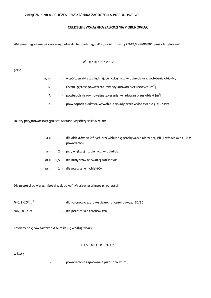 załącznik nr 4 obliczenie wskaźnika zagrożenia piorunowego