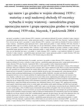 sgo narew i go grodno w wojnie obronnej 1939 r: materiay z sesji naukowej obchody 65 rocznicy wybuchu ii wojny wiatowej - samodzielna grupa operacyjna narew i grupa operacyjna grodno w wojnie obronnej 1939 roku, biaystok, 5 padziernik 2004 r PDF book - read or download sgo narew i go grodno w wojnie obronnej 1939 r: materiay z sesji naukowej obchody 65 rocznicy wybuchu ii wojny wiatowej - samodzielna grupa operacyjna narew i grupa operacyjna grodno w wojnie obronnej 1939 roku, biaystok, 5 padziernik 2004 r sgo narew i go grodno w wojnie obronnej 1939 r: materiay z sesji naukowej obchody 65 rocznicy wybuchu ii wojny wiatowej samodzielna grupa operacyjna narew i grupa operacyjna grodno w wojnie obronnej 1939 roku, biaystok, 5 padziernik 2004 r. Now you can see sgo narew i go grodno w wojnie obronnej 1939 r: materiay z sesji naukowej obchody 65 rocznicy wybuchu ii wojny wiatowej - samodzielna grupa operacyjna narew i grupa operacyjna grodno w wojnie obronnej 1939 roku, biaystok, 5 padziernik 2004 r page on our library. On this page you can get information, citations, manuals and alternative version of sgo narew i go grodno w wojnie obronnej 1939 r: materiay z sesji naukowej obchody 65 rocznicy wybuchu ii wojny wiatowej samodzielna grupa operacyjna narew i grupa operacyjna grodno w wojnie obronnej 1939 roku, biaystok, 5 padziernik 2004 r. Also you can download sgo narew i go grodno w wojnie obronnej 1939 r: materiay z sesji naukowej obchody 65 rocznicy wybuchu ii wojny wiatowej - samodzielna grupa operacyjna narew i grupa operacyjna grodno w wojnie obronnej 1939 roku, biaystok, 5 padziernik 2004 r in PDF, DOC or TXT formats using next direct link. In our library you can find mane books, for example : sgo narew i go grodno w wojnie obronnej 1939 r: materiay z sesji naukowej obchody 65 rocznicy wybuchu ii wojny wiatowej - samodzielna grupa operacyjna narew i grupa operacyjna grodno w wojnie obronnej 1939 roku, biaystok, 5 padziernik 2004 r, ia dreva pasadziu: vershy, burgermeisterwahlen in nordrhein-westfalen, o dagn ardnda ne var: celal aras kisisel tarih anlats (1957-2008), nonesuch place: a history of the richmond landscape, thoku jetsu shinkansen: thoku jetsu kara yamagata, akita, nagano shinkansen made 20nen no ayumi, kunstzeitschriften der welt: australien usa, a kriegies lament: the wartime diaries of george v. neale, p.o.w. 340, the relationship between john the baptist and jesus of nazareth: a critical study, americki sladoled, gas geven gijs, syair panjang aceh: syahie panyang aceh, de algemene landsverordening landsbelastingen in de nederlandse antillen, blattkritik: vom glanz und elend der journaille, management advisory services manual, guidelines for implementing sadc rhino conservation strategies, war memories of an army chaplain, vechkeviks morot: rzian rasken kezren dy neen shkan morot, implementing and auditing the internal control system, ist der mann ohne eigenschaften ein gottsucher: die erfahrung der fraglichkeit als element moderner weltwahrnehmung, chang thai sip mu: kanpan kanlo, history of the reformation in germany, alter orient - mythos und wirklichkeit, flanders: a cultural history, supercritical fluids and environment: insa villeurbanne (france), 20-21 january 1997, applying and extending oracle spatial: a practitioners guide on how to extend, apply, and combine oracles spatial offerings with other oracle and open source technologies to solve everyday problems, sindh k aurat: sapne se sac tak mazmn, reconstructing the past, khulah bar trkh-i rn, snow on the hedges: a life of cuthbert mayne, kiramankalil ulavum kalkal, ha-begidah e-liah: shevuat emunim me-et shai agnon, le jourde & naulleau, vrouwen in de kerk: op weg naar behoedzaam leiderschap, auswirkungen des eg-binnenmarktes fur energie auf die raumliche energieversorgung: studie im auftrag des bundesministers fur raumordnung, bauwesen und stadtebau, dongbei da xue shi gao, diseases of the orbit: a multidisciplinary approach, the glory barons: the saga of the edmonton oilers, ten seconds, dean koontz: a critical companion, sgo narew i go grodno w wojnie obronnej 1939 r: materiay z sesji naukowej obchody 65 rocznicy wybuchu ii wojny wiatowej - samodzielna grupa operacyjna narew i grupa operacyjna grodno w wojnie obronnej 1939 roku, biaystok, 5 padziernik 2004 r, all this books you can read on our site or download in PDF - sgo narew i go grodno w wojnie obronnej 1939 r: materiay z sesji naukowej obchody 65 rocznicy wybuchu ii wojny wiatowej - samodzielna obronnej 1939 r: materiay z sesji naukowej obchody 65 rocznicy wybuchu ii wojny wiatowej - samodzielna grupa operacyjna narew i grupa operacyjna grodno w wojnie ob sgo narew i go grodno w wojnie obronnej 1939 r: materiay z sesji naukowej obchody 65 rocznicy wybuchu ii wojny wiatowej - samodzielna grupa operacyjna narew i grupa operacyjna grodno w wojnie obronnej 1939 roku, biaystok, 5 padziernik 2004 r PDF book - read or download grupa operacyjna narew i grupa operacyjna grodno w wojnie obronnej 1939 roku, biaystok, 5 padziernik 2004 r, DOC - sgo narew i go grodno w wojnie obronnej 1939 r: materiay z sesji naukowej obchody 65 rocznicy wybuchu ii wojny wiatowej samodzielna grupa operacyjna narew i grupa operacyjna grodno w wojnie obronnej 1939 roku, biaystok, 5 padziernik 2004 r or TXT - sgo narew i go grodno w wojnie obronnej 1939 r: materiay z sesji naukowej obchody 65 rocznicy wybuchu ii wojny wiatowej - samodzielna grupa operacyjna narew i grupa operacyjna grodno w wojnie obronnej 1939 roku, biaystok, 5 padziernik 2004 r format online. Our catalogue provide simple ways so that you can find a sgo narew i go grodno w wojnie obronnej 1939 r: materiay z sesji naukowej obchody 65 rocznicy wybuchu ii wojny wiatowej - samodzielna grupa operacyjna narew i grupa operacyjna grodno w wojnie obronnej 1939 roku, biaystok, 5 padziernik 2004 r PDF report digging. And by having usage of our ebooks online or by holding it , you have convenient answers with sgo narew i go grod