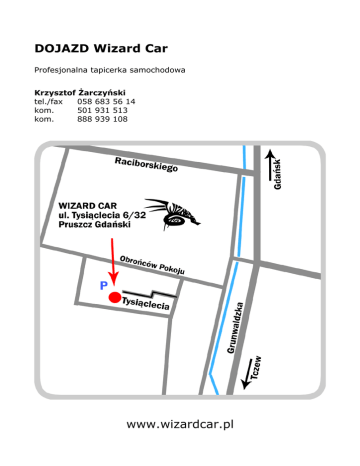 DOJAZD Wizard Car Profesjonalna tapicerka samochodowa Krzysztof Żarczyński tel./fax 058 683 56 14 kom. 501 931 513 kom. 888 939 108 www.wizardcar.pl