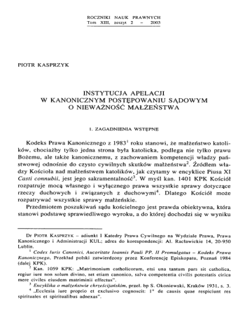 W daw nym praw ie kanonicznym spotykam y się także z in sty tu cją apelacji