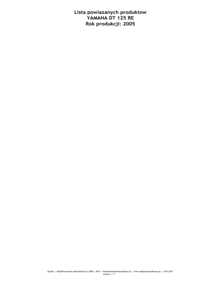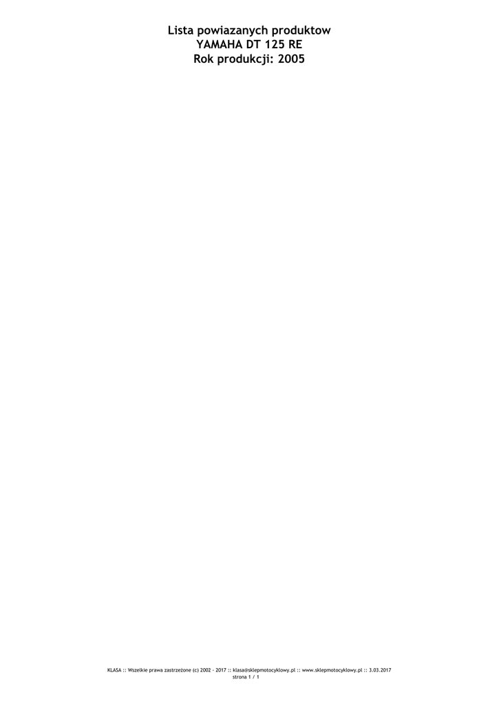 Lista powiazanych produktow YAMAHA DT 125 RE Rok produkcji: 2005 KLASA :: Wszelkie prawa zastrzeżone (c) 2002 - 2017 :: [email protected] :: www.sklepmotocyklowy.pl :: 3.03.2017 strona 1 / 1