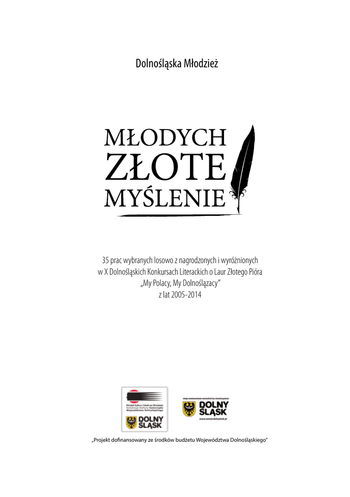 Dolnośląska Młodzież 35 prac wybranych losowo z nagrodzonych i wyróżnionych w X Dolnośląskich Konkursach Literackich o Laur Złotego Pióra „My Polacy, My Dolnoślązacy” z lat 2005-2014 „Projekt dofinansowany ze środków budżetu Województwa Dolnośląskiego” 1 DOLNOŚLĄSKI KONKURS LITERACKI O LAUR ZŁOTEGO PIÓRA „MY POLACY, MY DOLNOŚLĄZACY” ORGANIZATORZY WSPÓŁORGANIZATOR www.zlote-pioro.pl 2 Słowo wstępne Oto w ręce Czytelników trafia zbiór najciekawszych tekstów X Jubileuszowego Konkursu o Laur Złotego Pióra „My Polacy – My Dolnoślązacy”. Poproszony o napisanie do niego krótkiego wprowadzenia, czuję wielką odpowiedzialność za każde słowo, zwłaszcza że targają mną trudne do opisania, bo niejednoznaczne, odczucia. Ogromny mój szacunek budzą rozległość i ważność poruszonych problemów, a także sprawność językowo-stylistyczna wszystkich bez wyjątku prac. Młodzi Polacy dokonują w nich przeglądu na pewno najistotniejszych zjawisk współczesności: przyglądają się hierarchii wartości w rodzinie; próbują określić, czym jest dzisiaj patriotyzm – czy przeżywamy czas jego zmierzchu, a może tylko ewolucji – oraz jak się przejawia miłość do ojczyzny, własnego regionu bądź rodzinnego miasta; śledzą losy rodaków poza granicami kraju; niepokoi ich zataczające coraz szersze kręgi społeczne uzależnienie od rzeczywistości elektronicznej, szukają więc ratunku – na przykład w sporcie i w wartościowej muzyce; zastanawiają się, jak budować mosty ludzkiej solidarności i czym jest polska pamięć zbiorowa; podpowiadają, z czego możemy i powinniśmy być dumni; zgłębiają rozumienie wolności człowieka. Powtórzę: to ogromny i ważny obszar penetracji. Czemu więc w pierwszym akapicie zwierzyłem się ze swoich niejednoznacznych odczuć? – Ano dlatego, że – daleki od pięknoduchostwa i głupiej wesołkowatości – poczułem się jednak trochę wbity w ziemię, gdy przeczytałem: „Otaczająca mnie rzeczywistość jest ponura” albo „Dołożę wszelkich starań, aby nie pójść w ślady moich rodziców. Rodziców XXI wieku”. Oczywiście, każdy ma prawo do takiej językowej ekspresji, do takiego widzenia świata i nawet swoich najbliższych. Ale w odniesieniu do pierwszego zdania ciśnie mi się na usta riposta człowieka, który w roku 1989 miał za sobą przeżyte 43 lata: „Dzieci, czy wy naprawdę wiecie, jak wygląda ponura rzeczywistość?”, w od3 niesieniu zaś do wypowiedzi drugiej – nieśmiałe pytanie: „Czy rodzice XXI wieku zasługują na tak druzgocącą ocenę? Bo mnie się akurat wydaje, że zwłaszcza w Polsce poświęcają się oni swoim dzieciom o wiele bardziej niż pokolenia starsze”. Pytam więc: czy to szczere odczucia, czy odblask powszechnej w Polsce „narzekanistyki”, jak mawiał Stanisław Lem, napędzanej przez polityków, dziennikarzy, nauczycieli, kaznodziejów? A jeśli to drugie – doprawione sporą dawką patosu i stereotypowych stwierdzeń, to czy młodymi ludźmi, chłonącymi jak gąbka tego typu opinie o współczesnym zdemoralizowanym świecie, nie kieruje mechanizm – choćby podświadomego – mimesis? Ostateczny bilans moich odczuć po przeczytaniu zamieszczonych w tomie tekstów jest jednak zdecydowanie pozytywny. Wierzę, że rozgrywa się w nich rzecz o Polskę i współczesne świat. O lepszą Polskę i o lepszy współczesny świat! Wrocław, 1 września 2014 Jan Miodek 4 Rys historyczny konkursu MY POLACY MY DOLNOŚLĄZACY LATA 2005-2014 Konkurs o Laur Złotego Pióra dla uczniów klas trzecich gimnazjów i młodzieży ze szkół ponadgimnazjalnych organizowany przez dyrektora Liceum Salezjańskiego – ks. Jerzego Babiaka i wrocławską redakcję Gościa Niedzielnego – cieszy się dużą popularnością wśród młodych Dolnoślązaków. A zaczęło się bardzo zwyczajnie, bo od przypadkowego spotkania w rynku 2004 roku dwóch księży dyrektorów: Gościa Niedzielnego i Liceum Salezjańskiego. W sercu Wrocławia przy kawiarnianym stoliku zaczęli się zastanawiać, co mogliby wspólnie zrobić dla dolnośląskiej młodzieży, jak sprowokować ją do wnikliwego myślenia, do wyrażania siebie, w obliczu przemian, zachodzą w ojczyźnie, a głównie do refleksji dotyczących rodzin: tej najmniejszej komórki społecznej oraz tej ojczyźnianej: małej i dużej. I tak narodziła się idea konkursu: MY POLACY, MY DOLNOŚLĄZACY. Księża: Janusz Gorczyca i Jerzy Babiak przystąpili do organizowania zaszczytnych zmagań o laur złotego pióra. Konkurs okazał się strzałem w dziesiątkę. W pierwszej edycji wzięło udział blisko 400 uczestników, zatem nic dziwnego, że doczekał się on dekady. Nie byłoby jej jednak, gdyby nie grono życzliwych ludzi w lokalnej administracji i nie tylko. To oni uznali pomysł dwóch duchownych za sensowny, ważny, potrzebny i wsparli honorowym patronatem, a sponsorzy cennymi nagrodami. Sponsorzy się zmieniają, ale zawsze są hojni, gdyż kierują się zasadą, że uznanie sprzyja rozwojowi sztuki (honos alit artes). Jednakże niezmiennie swój podziw dla młodych twórców podkreśla wrocławska Radiotechnika marketing sp. z o. o., ofiarowując laptopy. A jest za co nagradzać młodych autorów, gdyż w nadesłanych około 2500 pracach z ponad 100 szkół miast i miasteczek naszego regionu zadziwiała niepowtarzalność i bogactwo myśli, nieprzeciętna erudycja, a czasami słowa mądrego krytycyzmu, lecz przede 5 wszystkim zachwycała wrażliwość estetyczna i emocjonalna urzekająca siłą młodzieńczego wzruszenia. A przecież tematy, z którymi zmagali się młodzi adepci pióra, oscylowały wokół trudnych zagadnień egzystencjalnych. Związane były np. z dużą i małą ojczyzną, różnorodnością uczuć patriotycznych i rodzinnych, ich ewolucją czy zmierzchem, uzależnieniami od internetu, wirtualnej rzeczywistości, poszukania antidotum w sporcie. Dotyczyły stawiania zapo