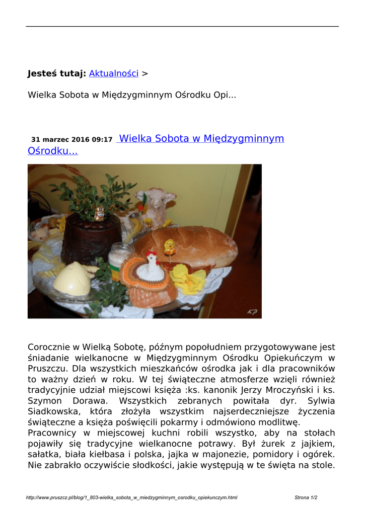 31 marzec 2016 09:17 Wielka Sobota w Międzygminnym Ośrodku
