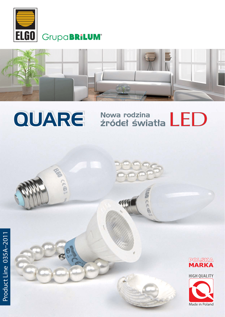 Product Line 035A–2011 QUARE Nowa rodzina źródeł światła QUARE Czas na zmiany – czas na LED Źródła światła zbudowane w oparciu o technikę diod świecących LED to obecnie najnowocześniejszy i najbardziej energooszczędny sposób generowania światła sztucznego w powszechnych – domowych i publicznych zastosowaniach. Wszystkie zalety technologii LED wykorzystuje nowa seria lamp QUARE. QUARE A55 M 2 QUARE S4 M QUARE GU10 w.1 Źródła QUARE posiadają 5 lat gwarancji producenta. Wiele lat bez konieczności wymiany Zasilanie bezpośrednio z sieci Ledowe źródła światła QUARE osiągają trwałość rzędu 50 tysięcy godzin. Dzięki temu czas ich eksploatacji może wynosić nawet do kilkunastu lat. Wielokrotnie przekracza to niezawodność innych lamp używanych w podobnych zastosowaniach – świetlówek kompaktowych, żarówek halogenowych i tradycyjnych. Diody ACRICHE firmy Seoul Semiconductor zastosowane w lampach QUARE są zasilane bezpośrednio z sieci 230 V, bez konieczności użycia układów elektronicznych obniżających napięcie. Upraszcza to budowę źródeł światła QUARE i zwiększa ich niezawodność. Niska moc tylko 3,5 W Dwie barwy światła białego Bardzo wysoka skuteczność diod LED generujących światło w lampach QUARE zapewnia jasne oświetlenie przy niewielkim zużyciu energii elektrycznej. Źródła światła QUARE zużywają tylko 3,5 W mocy elektrycznej. W zależności od indywidualnych potrzeb, do dyspozycji są źródła światła QUARE w dwóch wariantach temperatury barwowej światła białego: • dziennej-białej ok. 6300 K, • ciepłej-białej ok. 3000 K. Bańka mleczna Lampy QUARE z popularnymi trzonkami typu E27 i E14, odpowiedniki żarówek tradycyjnych i świecowych, dostępne są w wersji z bańką mleczną łagodnie rozpraszającą światło. Ceramiczna obudowa chłodzi skuteczniej QUARE GU10 w.2 Temperatura pracy diod LED ma krytyczne znaczenie dla ich trwałości i uzyskiwanych parametrów świetlnych. W źródłach światła QUARE zastosowano nowy rodzaj obudowy wykonanej z materiału ceramicznego bardzo skutecznie odprowadzającego ciepło. Zoptymalizowało to warunki pracy diod LED i pozwoliło na wyeliminowanie użebrowania obudowy. Dzięki temu kształt i forma lamp QUARE są jeszcze bardziej zbliżone do obecnych na rynku żarówek halogenowych i tradycyjnych. 3 Do wszystkich domowych zastosowań Trzy rodzaje nowych źródeł światła QUARE są doskonałą i energooszczędną alternatywą energochłonnych żarówek halogenowych, świecowych i tradycyjnych we wszystkich popularnych zastosowaniach oświetleniowych. QUARE GU10 Alternatywa żarówki halogenowej GU-10 • Źródło światła QUARE GU10 może z powodzeniem zastąpić energochłonną żarówkę halogenową o mocy 20 W i trzonku GU10. • QUARE GU10 pozwala osiągnąć poziom oszczędności energii elektrycznej sięgający 80%. • Trwałość lampy QUARE GU10 jest osiemnastokrotnie wyższa w porównaniu z tradycyjnym halogenem. • Do wyboru są lampy z przednim pierścieniem obudowy w kolorze białym lub szarym. • Lampa zamknięta jest z przodu ryflowaną soczewką, która sprawia, że kąt emisji wiązki świetlnej wynosi 45°. QUARE S4 Zamiennik żarówki świecowej z trzonkiem E14 • Źródło światła QUARE S4 jest odpowiednikiem żarówki świecowej o mocy 25 W i trzonku E14. • QUARE S4 pozwala osiągnąć poziom energooszczędności sięgający 85%. • Trwałość lampy QUARE S4 przewyższa aż trzydziestopięciokrotnie żywotność tradycyjnej żarówki świecowej. • Lampa z bańką mleczną – rozpraszającą światło. QUARE A55 Odpowiednik żarówki tradycyjnej z trzonkiem E27 • Źródło światła QUARE A55 stanowi energooszczędny zamiennik najpopularniejszych żarówek standardowych ogólnego stosowania o mocy 25 W, z trzonkiem E27. • W porównaniu do żarówki tradycyjnej pozwala zaoszczędzić 85% energii elektrycznej. • Trwałość lampy QUARE A55 przekracza trzydziestopięciokrotnie żywotność klasycznej żarówki. • Lampa z bańką mleczną – rozpraszającą światło. 4 Dane techniczne 99 106 Ø55 Ø49 54 Ø36 QUARE GU10 QUARE S4 QUARE A55 QUARE GU10 Index Model YJ-WO0066-28 QUARE GU10, w.1 YJ-WO0066-29 QUARE GU10, w.1 Dioda Maksymalna światłość Moc Trzonek 210cd Kąt rozsyłu Trwałość pierścień biały 240cd 1 x ACRICHE Klosz/Pierścień pierścień biały 3,5W GU10 45° Barwa światła Temperatura barwowa ciepła biała 3000K dzienna biała 6300K 35 000h YJ-WO0069-17 QUARE GU10, w.2 210cd pierścień szary ciepła biała 3000K YJ-WO0069-18 QUARE GU10, w.2 240cd pierścień szary dzienna biała 6300K Barwa światła Temperatura barwowa ciepła biała 3000K dzienna biała 6300K Barwa światła Temperatura barwowa ciepła biała 3000K dzienna biała 6300K QUARE S4 Index YJ-WO0066-20 Model Dioda QUARE S4, M Strumień świetlny* Trzonek 3,5W E14 150 lm 1 x ACRICHE YJ-WO0066-21 Moc QUARE S4, M Klosz/Pierścień Kąt rozsyłu Trwałość - 35 000h klosz mleczny 230 lm klosz mleczny QUARE A55 Index YJ-WO0066-24 Model Dioda QUARE A55, M Strumień świetlny* Trzonek 3,5W E27 150 lm 1 x ACRICHE YJ-WO0066-25 Moc QUARE A55, M 230 lm Klosz/Pierścień Kąt rozsyłu Trwałość - 35 000h klosz mleczny klosz mleczny * Parametr dotyczy diody i jest publikowany w oparciu o dane dostarczone przez jej producenta 5 lat gwarancji Źródła QUARE posiadają 5 lat gwarancji producenta. LED Producent zastrzega sobie prawo do dokonania zmian konstrukcyjnych w oferowanych produktach oraz zmiany szczegółowych danych technicznych nie zmieniając ogólnego charakteru produktu. 5 NOWOCZESNOŚĆ I TRADYCJA POLSKA MARKA 50 lat doświadczeń w produkcji sprzętu oświetleniowego Fabryka sprzętu oświetleniowego ELGO Lighting Industries S.A. w Gostyninie, to centrum produkcyjne Grupy BRILUM. Tam wytwarzana jest większość wyrobów oferowanych przez tę Grupę. Bogata i różnorodna gama profesjonalnego sprzętu oświetleniowego ELGO o