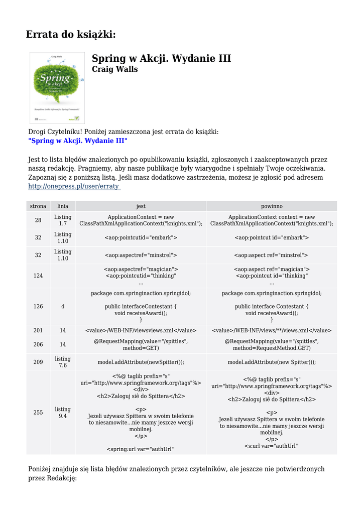 Jest to lista błędów znalezionych po opublikowaniu książki, zgłoszonych i zaakceptowanych przez
