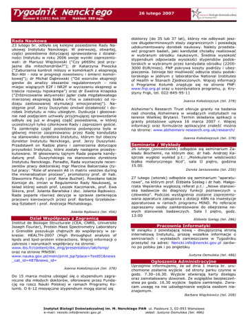 Instytut Biologii Doświadczalnej im. M. Nenckiego PAN ul. Pasteura 3, 02-093 Warszawa