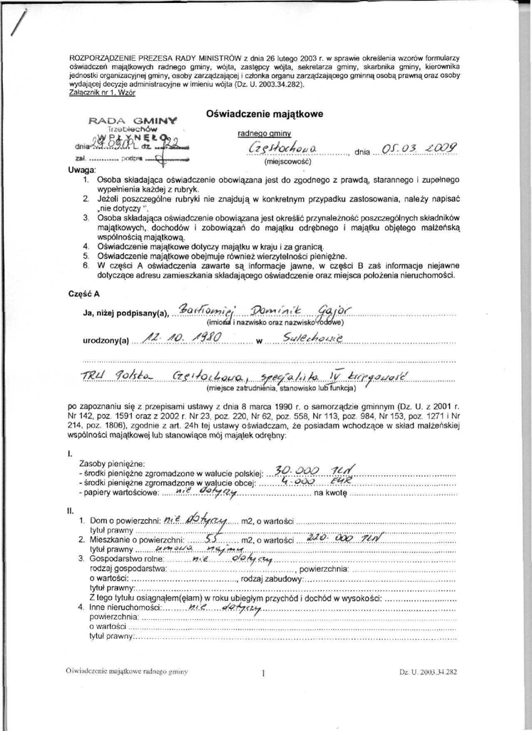 Oświadczenie majątkowe RAOA GMINY urodzony(a)... ,/^r.`.. .rv