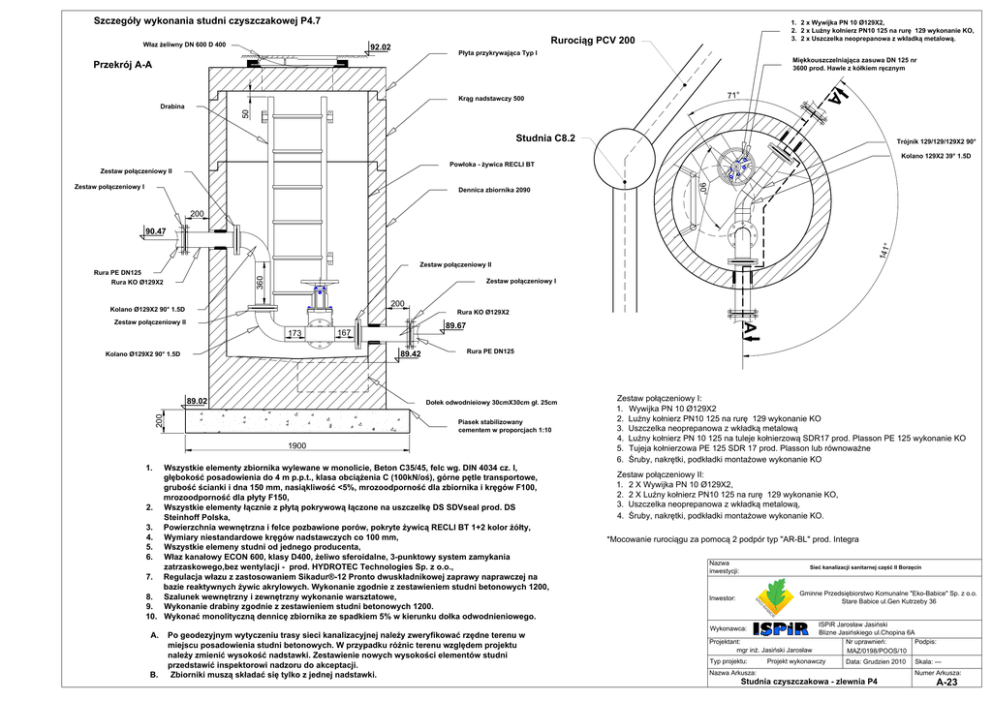 A-23 Studnia C8.2 Rurociąg PCV 200 Przekrój AA - Eko