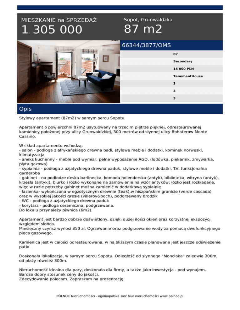 Wydruk oferty PDF - PÓŁNOC Nieruchomości