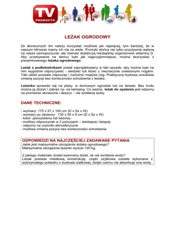 Pełny opis leżaka ogrodowego