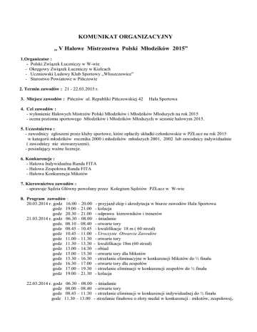 KOMUNIKAT ORGANIZACYJNY ,, V Halowe Mistrzostwa Polski