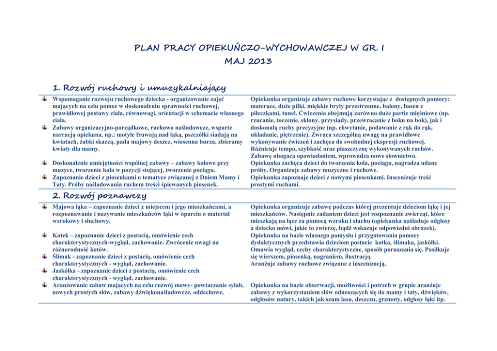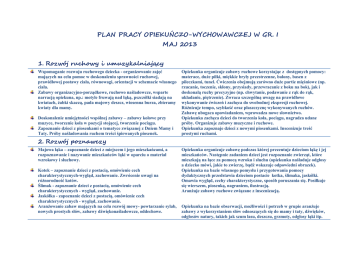 PLAN PRACY OPIEKUŃCZO-WYCHOWAWCZEJ W GR. I MAJ 2013