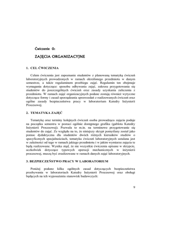 zajęcia organizacyjne - Katedra Inżynierii Procesowej