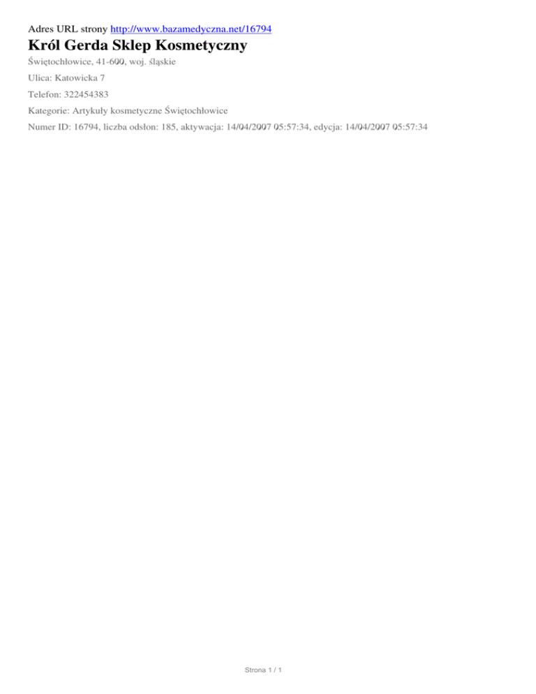 Krol Gerda Sklep Kosmetyczny, Swietochlowice, Katowicka 7