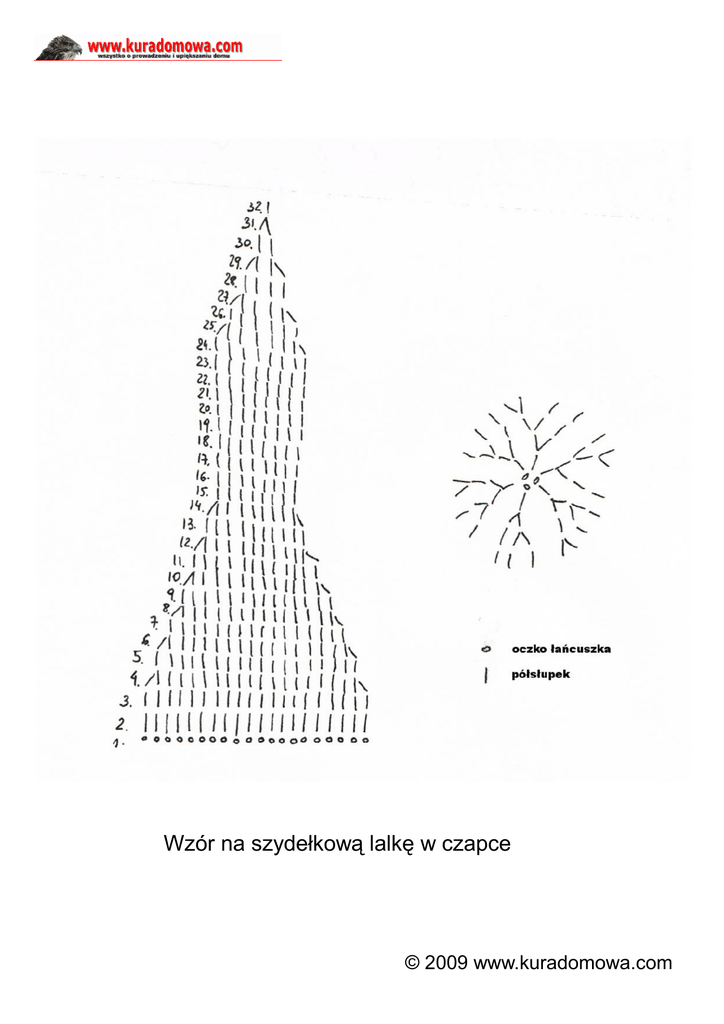 Wzór na szydełkową lalkę w czapce © 2009 www.kuradomowa.com