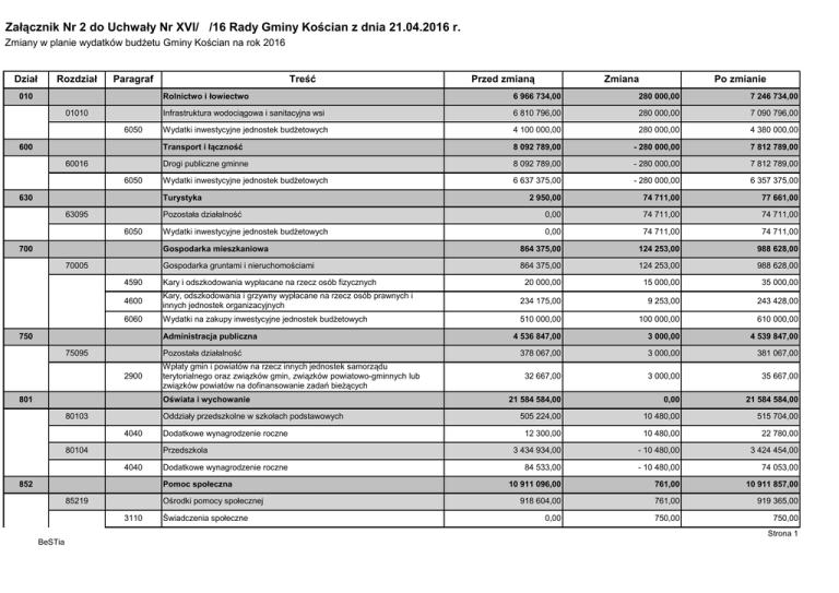 zał nr 2 do uchwały z 21.04.2016 zmiany w budżecie