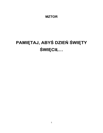 MZTOR PAMIĘTAJ, ABYŚ DZIEŃ ŚWIĘTY ŚWIĘCIŁ… 1 Akt I Scena I (rodzina siedzi w samochodzie, jeżdżąc po parkingu hipermarketu wybudowanym w górze śmieci, która ciągle się rozrasta) Ojciec: Żono, czy widzisz wolne miejsce na parkingu? Matka: Jedź na górny poziom, tam zawsze są wolne miejsca. Ojciec: Masz rację, przecież śmieci przybywa więcej niż samochodów. Matka: Te parkingi w górach śmieci to genialny pomysł. Syn: Matko, ojcze, bardzo lubię przyjeżdżać tutaj na coniedzielny spacer. Wiecie, że kolega 666 tydzień temu nie był i wszyscy w klasie się z niego śmieli… Matka: I bardzo dobrze, takie patologie trzeba piętnować! Ojciec: Zabraniam ci się kontaktować z tym… z tym outsiderem! Pamiętam jego ojca, też nie chodził. Matka: Niedaleko pada żołądź od kasztana! 2 Akt II Scena I (rodzina z koszykiem wędruje po hipermarkecie) Ojciec: Mamy jakiś plan zakupów? Matka: Nie. Po co? Przecież podpowiedzą nam reklamy i promocje, jakie produkty należy kupić. Syn: Ooo! Ojcze, matko! Chodźcie tutaj! Zobaczcie, jakie to fajne. Matka: Co to jest? Ojciec: Ciszej! Co inni pomyślą?! Nie ważne, co to, ważne, że fajne. Syn: Takie fajne. Ojciec: Ile to kosztuje? Syn: Zależy, z której półki bierzemy: czy z półki dla biednych, czy bogatych. (obok przechodzi znajoma Matki) Matka (głośno): Synu, bierz z półki dla najbogatszych. Ojciec: Może trochę oszczędniej. Matka: Patrzy na nas znajoma; najwyżej weźmiemy kredyt. Jej syn chodzi z naszym synem do jednej klasy. Ojciec: No dobrze. 3 Scena II (dźwięk z głośników) Zachęcamy do zakupu nowego modelu telewizjera z dodatkową funkcją do identyfikacji nowych przedmiotów u sąsiada. Jeśli wyrzucisz na śmieci swój stary model, nowy kupisz już za cenę poprzedniego. Ojciec: Świetna promocja. Nasz sąsiad jeszcze nie ma tego modelu. Pójdźmy porozmawiać ze sprzedawcą. Syn: Jest tam. Ojciec: Ostrożnie! Może zauważyć, że chcemy z nim rozmawiać. Matka: Już się zorientował. Ucieka. Syn: Ojcze, matko, mam odrzutowe Nike, dogonię go! Ojciec: No to leć! (Syn odnajduje sprzedawcę ukrytego między regałami żartującego z inną pracowniczką) Syn: Czy mógłby pan podejść do działu z telewizjerami, ponieważ moi rodzice są zainteresowani kupnem. Sprzedawca 1: Przecież widzisz, że jestem zajęty. Rozmawiam z koleżanką o filmie. Uprzejmie informuję, że musisz odszukać innego sprzedawcę. Syn: Gdzie mogę go znaleźć? Sprzedawca 1: Uprzejmie informuję, że nie wiem. Przecież nie jestem jasnowidzem. Może bawi się zabawkami. Syn: Dziękuję. (Syn idzie do działu z zabawkami i zauważa sprzedawcę bawiącego się samochodzikiem) 4 Syn (po cichu mówi do siebie): Całe szczęście, że jest zajęty zabawą. Nie zauważy, że do niego podejdę. (głośno) Dzień dobry, czy może pan podejść do działu z telewizjerami? Sprzedawca 2: Uprzejmie informuję, że jestem bardzo zajęty zabawą. Musisz odszukać sprzedawcę 1. Syn: Z nim już rozmawiałem. On też jest bardzo zajęty i odesłał mnie do pana. Sprzedawca 2: Przykro mi, ale ja jestem bardziej zajęty. Musisz wrócić do niego. (Syn wraca do poprzedniego sprzedawcy) Syn: Tamten pracownik jest bardziej zajęty od pana. Bardzo proszę… niech pan przejdzie ze mną do działy z telewizjerami. Sprzedawca 1: Masz szczęcie, że właśnie skończyłem rozmawiać. Chodźmy! Scena III (rodzina wraz z sprzedawcą znajduje się w dziale z telewizjerami) Sprzedawca 1: Dzień dobry. W czym mogę pomóc? Ojciec: Chciałbym kupić ten nowy telewizjer. Pan mi powie, czy to dobry pomysł? Sprzedawca 1: Oczywiście. Reklamowany model jest najwyższej klasy. Przede wszystkim posiada identyfikator nowego sprzętu u sąsiada. Jeśli więc powiesi pan telewizjer na ścianie wspólnej z innym mieszkaniem, oprócz tradycyjnej telewizji i możliwości widzenia, co dzieje się u lokatora, może pan dzięki wbudowanej dużej pamięci i nowemu mikroprocesorowi uzyskać spis nowych przedmiotów zakupionych przez sąsiada. Ta informacja pozwoli panu stworzyć listę zakupów na następny tydzień. Ojciec: Ma pan rację. Bierzemy! 5 Matka: Najpierw musimy wyrzucić stary. Syn: Ale przecież on jest jeszcze sprawny. Ojciec: Tak, ale ten jest nowszy. Scena IV Matka: Chodźmy do działu spożywczego. Ojciec: Dobrze, żono, ale przejdźmy się najpierw po sklepie, aby inni zobaczyli, że mamy nowy telewizjer. Matka: Dobry pomysł. (po dłuższej wędrówce rodzina trafia do działu spożywczego) Syn: Jakie równe te marchewki… Matka: Przecież określa to norma prawna. Ojciec: Zapamiętaj sobie, synu, że marchewka musi mieć długość 10 cm, średnicę 2 cm, kolor według palety RGB 225, 87, 37 oraz nie może mieć pęknięć i rozdwojeń! Syn: A jeżeli nie spełnia tych wymogów, to jej smak i właściwości są inne? Ojciec: Oczywiście, że nie, ale nie jest już taka estetyczna i trudniej ją obrać. Syn: A co robią producenci na przykład z krzywymi? Ojciec: Niszczą, a co mają robić?! 6 Syn: Nie lepiej dostarczyć je głodującym ludziom? Ojciec: Myśl o sobie, a nie o innych, bo tobie marchewki zabraknie! Matka: Jeszcze ziemniaki i możemy kierować się w kierunku kas. 7 Akt III Scena I ( w kasach siedzą niedożywione, przemęczone kobiety, artykuły pakują krzywiczni wolontariusze) Ojciec: Jakie kolejki przy kasach! Syn: Dobrze, przynajmniej więcej ludzi nas zobaczy. Matka: Chodźmy do kasy dla osób uprzywilejowanych. W razie czego będę udawała, że jestem w ciąży. (rodzina podchodzi do kasy dla osób uprzywilejowanych) Kobieta w widocznej ciąży: Przepraszam bardzo, ale to jest kasa dla uprzywilejowanych! (rodzina, rozglądając się dookoła, udaje, że nie słyszy) Kobieta w widocznej ciąży: Słyszy pani?! Matka: Pani mówi do mnie? Kobieta w widocznej ciąży: Tak! Nie wygląda pani ani na inwalidę, ani na kobietę w stanie błogosławionym, a to jest kasa dla takich osób! Matka: Proszę pani, nie mam zamiaru
