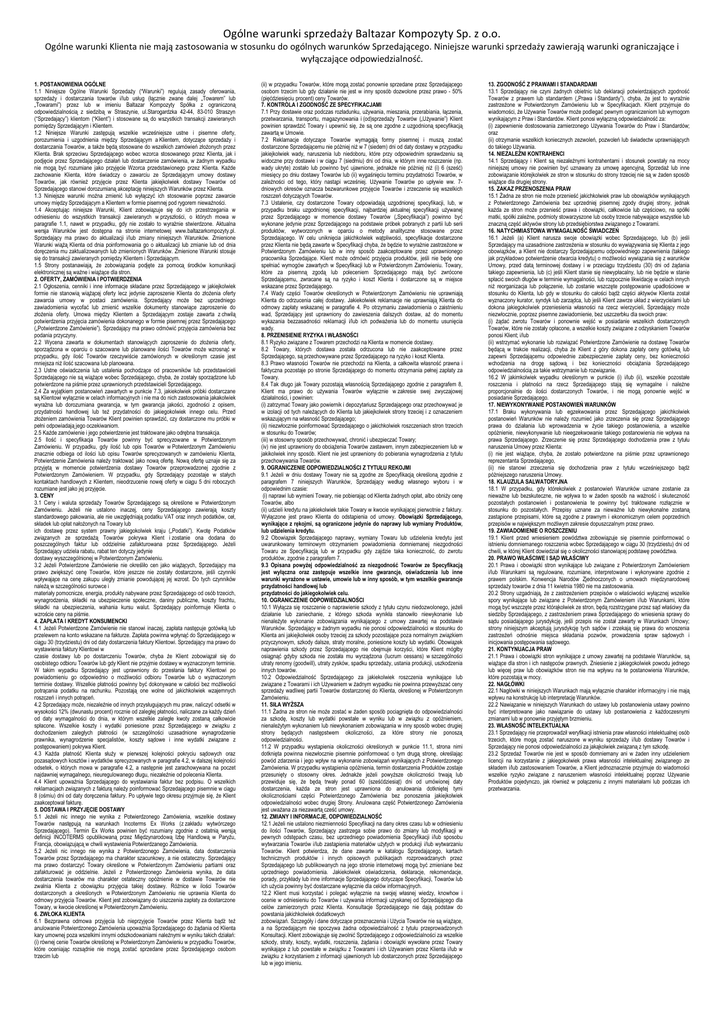 Ogólne warunki sprzedaży Baltazar Kompozyty Sp. z o.o.