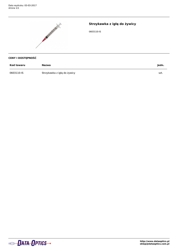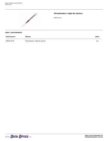 Data wydruku: 03-03-2017 strona 1/1 Strzykawka z igłą do żywicy 0603110-IS CENY I DOSTĘPNOŚĆ Kod towaru Nazwa 0603110-IS Strzykawka z igłą do żywicy Jedn. szt. http://www.dataoptics.pl [email protected] Powered by TCPDF (www.tcpdf.org)
