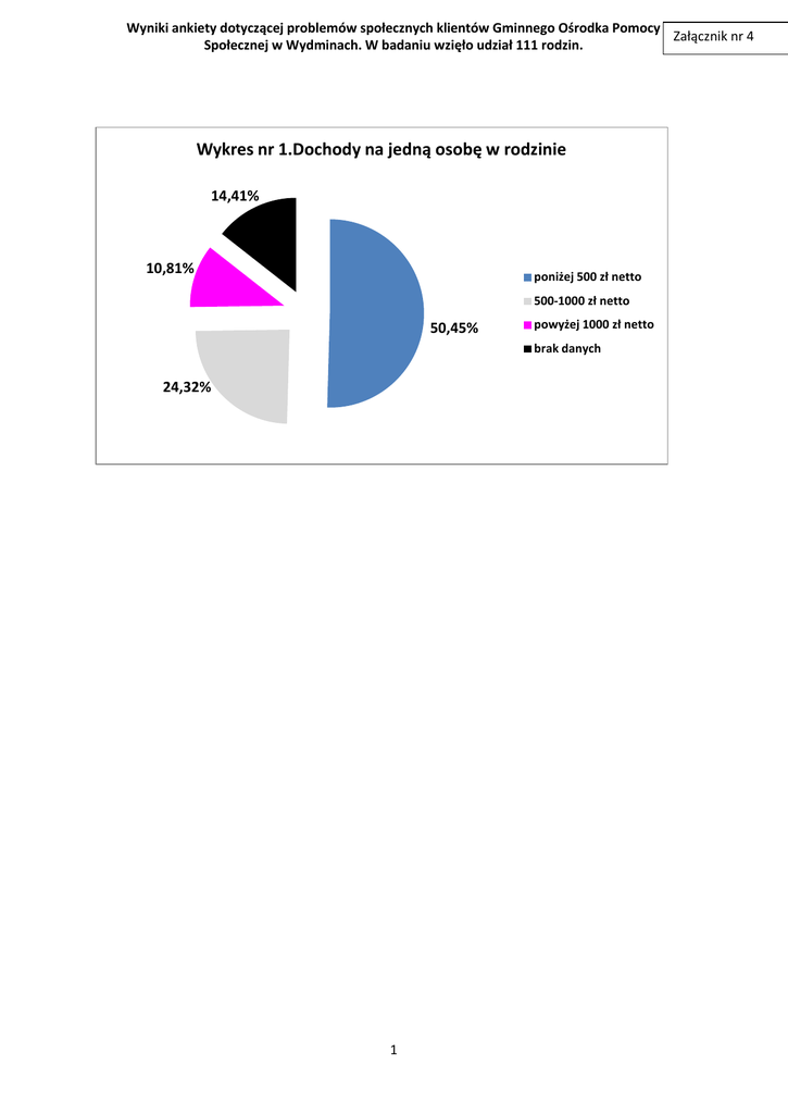 Wykres nr 1.Dochody na jedną osobę w rodzinie