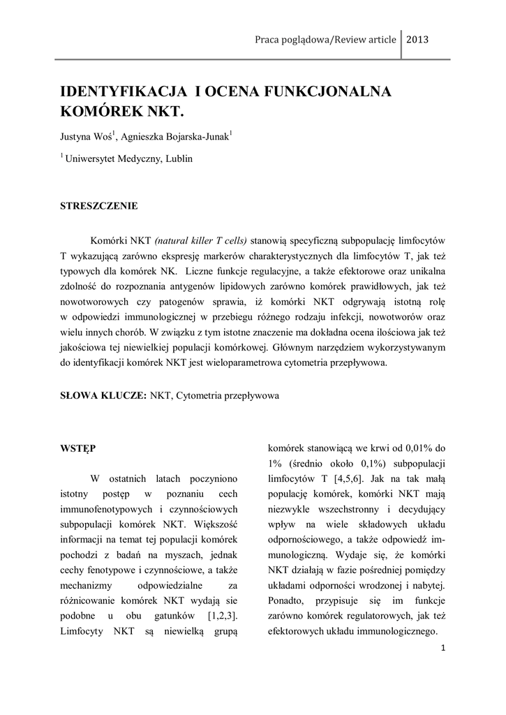 IDENTYFIKACJA I OCENA FUNKCJONALNA KOMÓREK NKT.