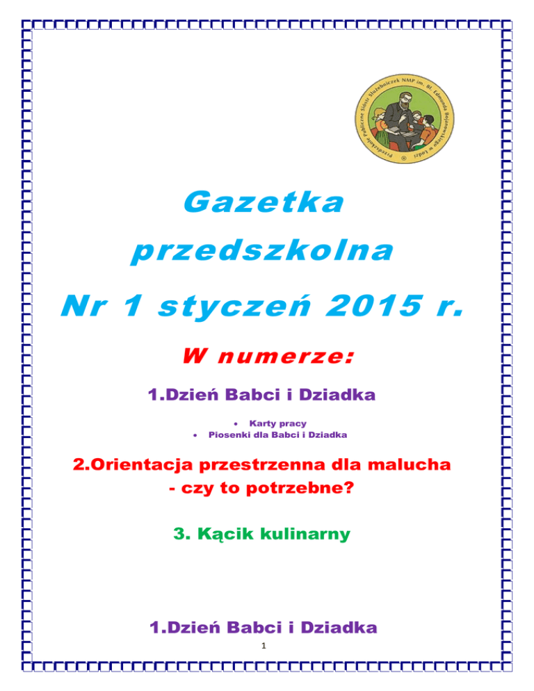 Gazetka przedszkolna Nr 1 styczeń 2015 r.