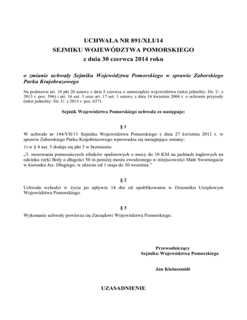 Uchwała Nr 891/XLI/14 Sejmiku Województwa Pomorskiego z dnia