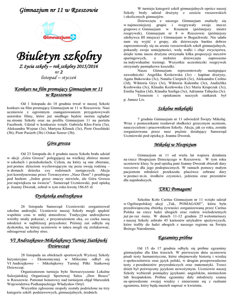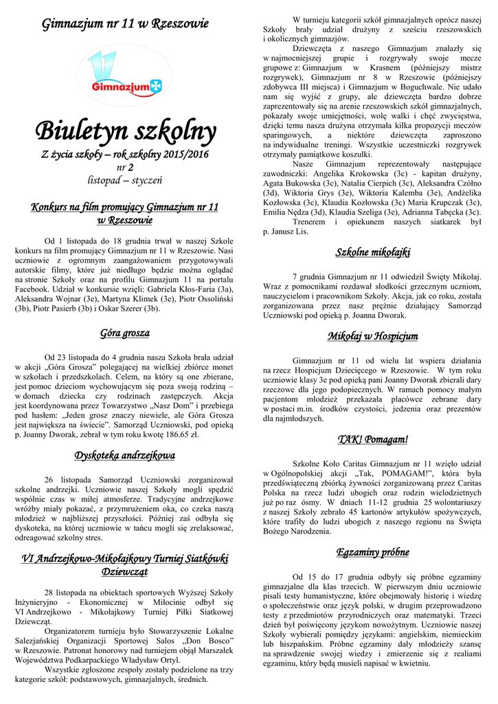 Biuletyn – rok szkolny 2015/2016 – nr 2