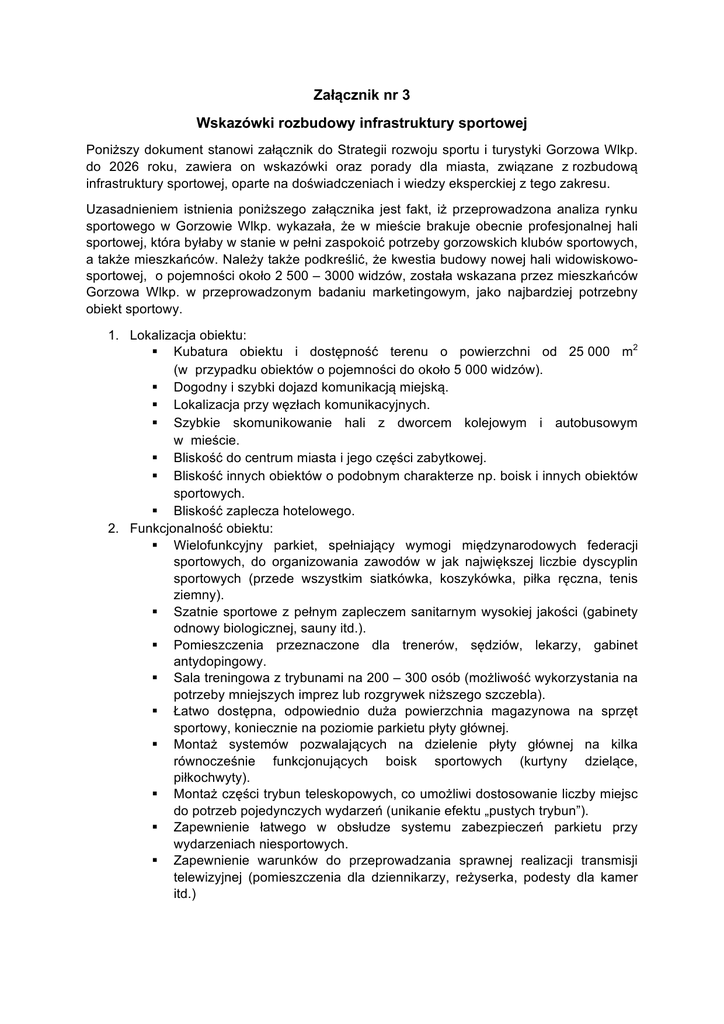 Załącznik 3 - Wskazówki dotyczące budowy nowego obiektu sportow