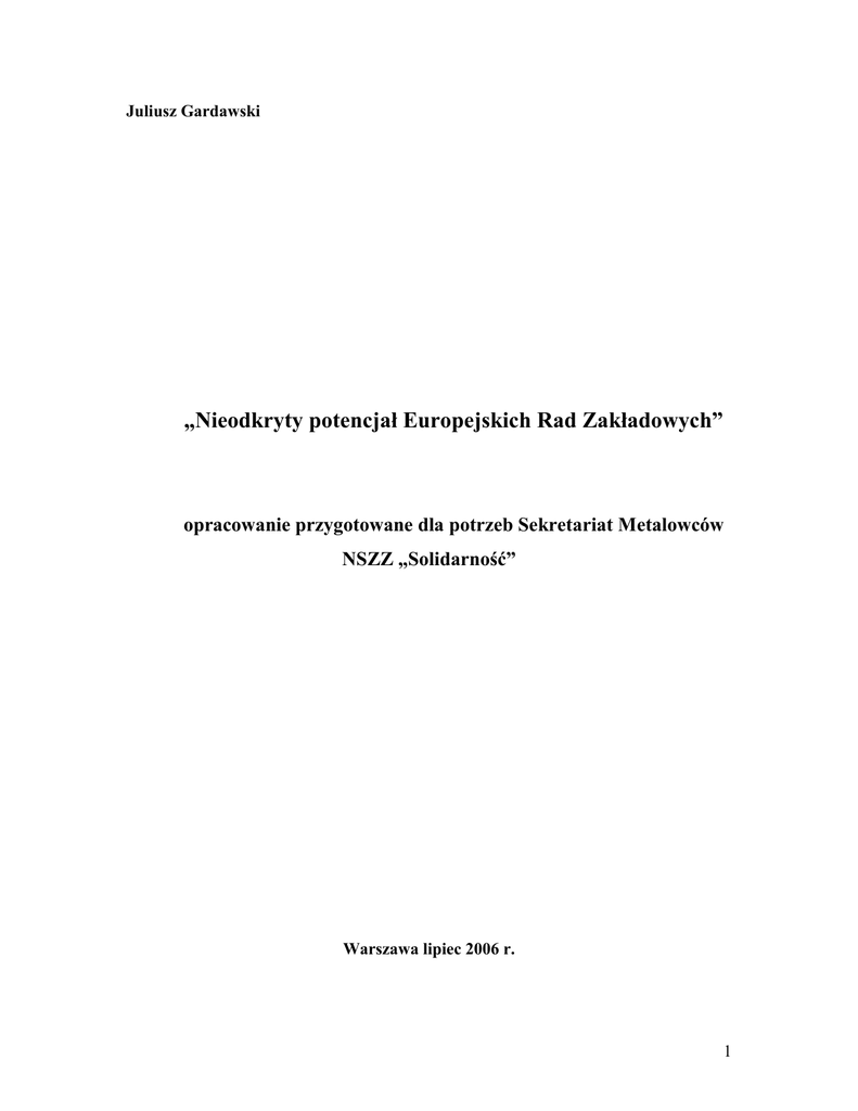 Juliusz Gardawski „Nieodkryty potencjał Europejskich Rad Zakładowych” opracowanie przygotowane dla potrzeb Sekretariat Metalowców NSZZ „Solidarność” Warszawa lipiec 2006 r. 1 Europejskie Rady Zakładowe w przemyśle metalowym w Polsce. Prezentowane opracowanie jest studium, które w dużej mierze powstało na podstawie badań terenowych, przeprowadzonych w pierwszej połowie 2006 roku. Celem projektu badawczego było stwierdzenie, jaki charakter ma instytucja Europejskiej Rady Zakładowej (ERZ)1 w polskich warunkach. Co prawda próba została zwężona do jednej grupy branżowej – odpowiadającej Sekretariatowi Przemysłu metalowego NSZZ „Solidarności” – jednak w przekonaniu piszącego te słowa wnioski z badań będzie można ostrożnie uogólnić na całą populację polskich ERZ. Projektodawcy badań sformułowali ogólny problem jako „nieodkryty potencjał ERZ”. Przedstawili także hipotezę, iż Dyrektywy 94/45/WE (przyjęta w 1994 a obowiązująca od września 1996 roku) i 2001/86/WE są skutecznym instrumentem wzmocnienia procedur informacji i konsultacji wewnątrz przedsiębiorstw i aktualnie stanowią najwyższe osiągnięcie w dziele europeizacji stosunków przemysłowych. Zarazem przyjęli, że należy dążyć do nowelizacji Dyrektywy, bowiem jej aktualny zapis ma szereg niedostatków. Tak więc przystępując do badań otrzymałem dwie wstępne hipotezy, pierwszą mówiącą, że instytucja ERZ zawiera potencjał niewykorzystany w polskich warunkach (a nawet potencjał nieuświadamiany przez związki zawodowe) oraz drugą o zdecydowanie pozytywnym charakterze instytucji ERZ. Na wstępie opracowania przedstawię niektóre kwestie o charakterze teoretycznym i omówię wybrane uogólnienia, zawarte w literaturze, następnie przedstawię najnowsze badania Jeremiego Waddingtona, przeprowadzone w ramach ETUI. W drugiej części opracowania przedstawię wyniki badań kwestionariuszowych oraz wyniki analiz rozmów z pracownikami polskich przedsiębiorstw, zaangażowanymi w działalność wybranych 1 W opracowaniu będę używał skrótu polskiej nazwy ERZ (Europejskie Rady Zakładowe), a nie angielskiej (EWC – European Works Council). Dodam, że w kilku przypadkach nazwa własna instytucji była inna (np. Forum Doradcze), jednak i w tych przypadkach będę używał skrótu ERZ. 2 ERZ. Z góry muszę zastrzec, że badania te mają charakter socjologiczny, odnoszą się do opinii odpowiednio dobranych respondentów krajowych, nie zawierają natomiast analizy dokumentów i wskaźników ekonomicznych. Ponadto muszę dodać, że nie udało się zrealizować badań kwestionariuszowych na planowaną skalę – przeprowadzono nieco ponad 20 takich wywiadów. I. Uwarunkowania działalności korporacji międzynarodowych. Podstawowe perspektywy badawcze Obecnie omówię pokrótce wybrane aspekty teoretycznego układu odniesienia. Na układ ten składają się takie zagadnienia jak charakter korporacji wielonarodowych (MNC2), globalizacja i przenoszenie wzorów zarządzania zasobami ludzkimi w ramach MNC, specyfika kultur i ustrojów gospodarczych itd. Od kilkunastu lat trwa debata na temat przynależności narodowej i tożsamości przedsiębiorstw wielonarodowych. Ukształtowały się dwa obozy: „pierwszy opowiada się za uznaniem silnego powiązania przedsiębiorstw z ich państwami pochodzenia (...). Przedstawiciele drugiego obozu są natomiast zdania, że współczesne przedsiębiorstwa tak bardzo „oddaliły” się od państw pochodzenia, że trudno mówić o łączących je więzach, a tym bardziej o narodowej przynależności przedsiębiorstw, gdyż de facto stały się one prawdziwie „bezpaństwowe‟” (Jaraczewska-Romaniuk 2004: 108). Jak mierzyć identyfikację narodową? Zgodnie z koncepcją przyjętą przez Międzynarodowy Trybunał Sprawiedliwości decydujące w tym względzie jest to, z jakiego kraju pochodzi dane przedsiębiorstwo (kraj, w którym przedsiębiorstwo uzyskało osobowość prawną i/lub którego jurysdykcji podporządkowana jest jego działalność), a także gdzie jest zlokalizowana centrala (zarząd centralny) lub ośrodek kontrolny. Ponadto przyjmuje się kryterium w postaci składu narodowościowego (tożsamości narodowej) centralnego zarządu i menedżmentu (grup, które w najwyższym stopniu określają charakter przedsiębiorstwa i sposób jego zarządzania) (tamże 110-112). 2 W opracowaniu będę używał skrótu angielskiej nazwy MNC (Multinational corporation) – korporacja wielonarodowa. Traktuję tę nazwę jako desygnat różnych typów wielonarodowych korporacji (wielonarodowych, międzynarodowych, ponadnarodowych). Piszę o tym więcej w dalszej części rozdziału. 3 Jak pisze autorka, coraz bardziej złożoną sprawą jest klarowne określenie współczesnych MNC według wskazanych powyżej kategorii identyfikacji narodowej. Jak pokażę poniżej, trudno o to w czasach rosnącej globalizacji, licznych przejęć przedsiębiorstw i całych grup przedsiębiorstw, pojawiania się MNC o podwójnych uzależnieniach (centralny zarząd w kraju pozaeuropejskim, w Europie zarząd europejski o różnym stopniu autonomii), pojawianie się „Światowych Rad Zakładowych” itd. Potwierdzały to nasze badania – w jednym z przedsiębiorstw okazywało się, że nowy właściciel pozostawał w skomplikowanych relacjach z dotychczasowym właścicielem a struktura własności i kontroli stała się tak złożona, że liderzy związkowi dopiero po upływie kilku miesięcy po zmianach własnościowych zdobyli wiedzę o tym, jaki jest podmiot podejmujący kluczowe decyzje w MNC. MNC a gospodarka liberalna i koordynowana Osobną kwestią jest narodowy kontekst, w którym przychodzi działać wielonarodowym korporacjom i wpływ tego kontekstu na funkcjonowania MNC. Badania z zakresu socjologii ekonomicznej pozwalają na klasyfikowanie typów stosunków przemysłowych oraz lokowanie ich w perspektywie różnych typów kapitalizmu (z