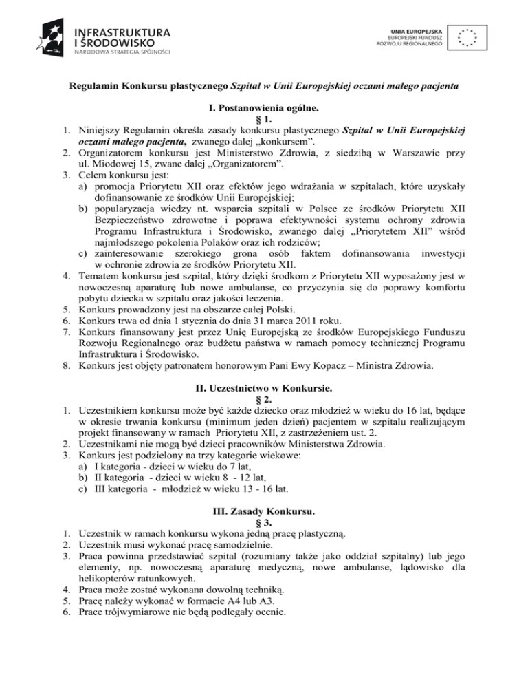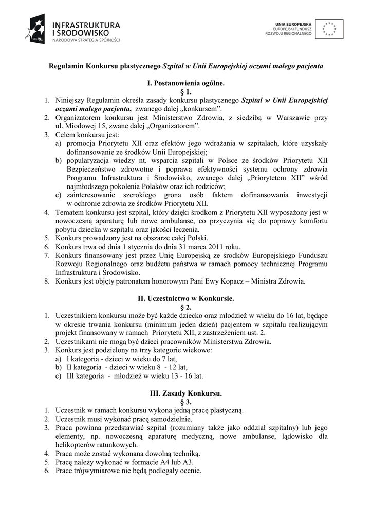 Regulamin Konkursu plastycznego Szpital w Unii Europejskiej