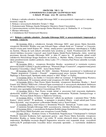 OKÓLNIK NR 3 / 16 Z POSIEDZENIA ZARZĄDU GŁÓWNEGO MZC