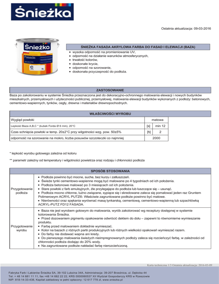Ostatnia aktualizacja: 09-03-2016 ŚNIEŻKA FASADA AKRYLOWA