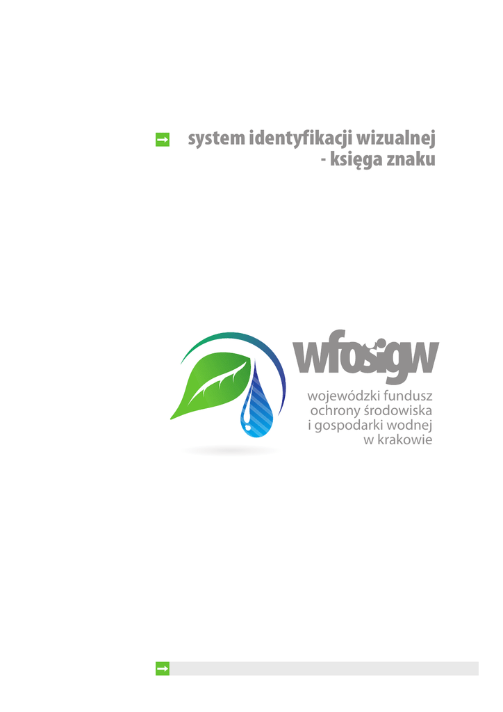 system identyfikacji wizualnej - ksiêga znaku wojewódzki fundusz ochrony rodowiska i gospodarki wodnej w krakowie siatka modu³owa 5,7 A 0,5 A 12 A 4,5 A 8,7 A wojewódzki fundusz ochrony rodowiska i gospodarki wodnej w krakowie 1A modu³ konstrukcyjny 10,2 A 4,5 A pole podstawowe i pole ochronne Przy stosowaniu znaku obowi¹zuj¹ pola zwane podstawowym i ochronnym. Pole podstawowe to najmniejszy obszar wystêpowania znaku. Dotyczy wszystkich form plastycznych p³askich. Pole ochronne to pole wokó³ znaku, na którym nie mo¿na umieszczaæ ¿adnej formy graficznej (z wyj¹tkiem t³a). POLE PODSTAWOWE wojewódzki fundusz ochrony rodowiska i gospodarki wodnej w krakowie POLE OCHRONNE wojewódzki fundusz ochrony rodowiska i gospodarki wodnej w krakowie specyfikacja kolorystyczna - wersja podstawowa F F D D wojewódzki fundusz ochrony rodowiska i gospodarki wodnej w krakowie E A C B B CMYK RGB PANTONE C / U A 0 / 0 / 0 / 10 215 / 215 / 215 10% Process Black B 0 / 0 / 0 / 50 113 / 111 / 110 50 % Process Black C 100 / 0 / 0 / 0 0 / 131 / 215 Process Cyan D 100 / 100 / 0 / 0 0 / 19 / 93 Blue 072 E 60 / 0 / 100 / 0 82 / 162 / 40 361 F 76 / 0 / 100 / 23 35 / 111 / 37 348 specyfikacja kolorystyczna - wersja negatywowa G G E E wojewódzki fundusz ochrony rodowiska i gospodarki wodnej w krakowie F A D B C CMYK RGB PANTONE C / U A 0 / 0 / 0 / 50 113 / 111 / 110 50% Process Black B 0 / 0 / 0 / 30 156 / 154 / 154 30 % Process Black C 0 / 0 / 0 / 60 95 / 92 / 92 60 % Process Black D 100 / 0 / 0 / 0 0 / 131 / 215 Process Cyan E 100 / 100 / 0 / 0 0 / 19 / 93 Blue 072 F 60 / 0 / 100 / 0 82 / 162 / 40 361 G 76 / 0 / 100 / 23 35 / 111 / 37 348 warianty kolorystyczne wojewódzki fundusz ochrony rodowiska i gospodarki wodnej w krakowie PODSTAWOWY wojewódzki fundusz ochrony rodowiska i gospodarki wodnej w krakowie NEGATYWOWY wojewódzki fundusz ochrony rodowiska i gospodarki wodnej w krakowie ACHROMATYCZNY wojewódzki fundusz ochrony rodowiska i gospodarki wodnej w krakowie ACHROMATYCZNY NEGATYWOWY znak - forma uproszczona Logotyp WFOiGW w Krakowie wystêpuje równie¿ w formie uproszczonej. Pole podstawowe i pole ochronne dla tej formy stosowane jest wg zasad jak dla znaku podstawowego. Kolorystycznie wykorzystywane s¹ jedynie barwy oznaczone jako D i F. Formê uproszczon¹ mo¿na u¿ywaæ na t³o jasne i ciemne w tej samej wersji. Wystêpuje ona równie¿ w wersji achromatyczej i achromatycznej - negatywowej. UPROSZCZONY UPROSZCZONY ACHROMATYCZNY UPROSZCZONY ACHROMATYCZNY NEGATYWOWY znak - wielkosci minimalne wojewódzki fundusz ochrony rodowiska i gospodarki wodnej w krakowie 37 mm 27 mm g³ówne kroje pisma Myriad Pro a¹bcædeêfghijkl³mnñoópqrstuvwxyz¿ A¥BCÆDEÊFGHIJKL£MNÑOÓPQRSTUVWXYZ¯ 1234567890%(.,-;:!?)[]><+_=/&#@ Myriad Pro Black Condensed a¹bcædeêfghijkl³mnñoópqrstuvwxyz¿ A¥BCÆDEÊFGHIJKL£MNÑOÓPQRSTUVWXYZ¯ 1234567890%(.,-;:!?)[]><+_=/&#@ pomocnicze kroje pisma Myriad Pro Light a¹bcædeêfghijkl³mnñoópqrstuvwxyz¿ A¥BCÆDEÊFGHIJKL£MNÑOÓPQRSTUVWXYZ¯ 1234567890%(.,-;:!?)[]><+_=/&#@ Myriad Pro Bold a¹bcædeêfghijkl³mnñoópqrstuvwxyz¿ A¥BCÆDEÊFGHIJKL£MNÑOÓPQRSTUVWXYZ¯ 1234567890%(.,-;:!?)[]><+_=/&#@ WFOiGW w Krakowie - 2011