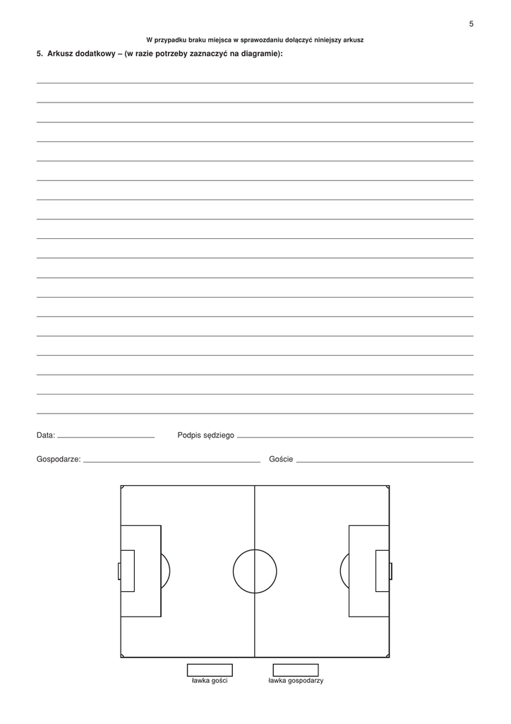 5 W przypadku braku miejsca w sprawozdaniu do≥πczyÊ niniejszy arkusz 5. Arkusz dodatkowy ñ (w razie potrzeby zaznaczyÊ na diagramie): Data: Gospodarze: Podpis sÍdziego Goúcie