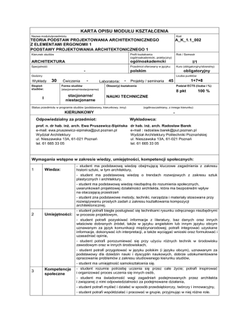 karta przedmiotu - Wydział Architektury Politechniki Poznańskiej