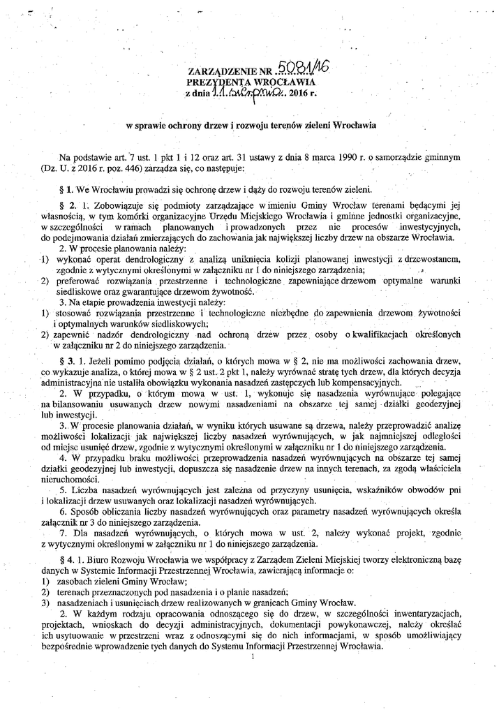 w sprawie ochrony drzew i rozwoju terenów zieleni Wrocławia