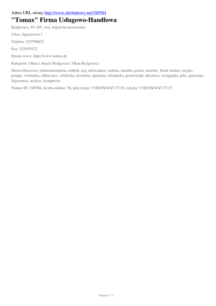 "Tomax" Firma Uslugowo-Handlowa, Bydgoszcz