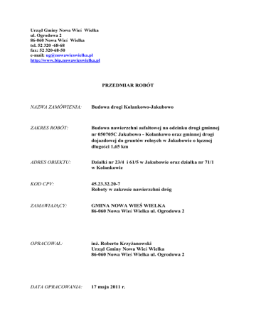 PRZEDMIAR ROBÓT NAZWA ZAMÓWIENIA: Budowa drogi