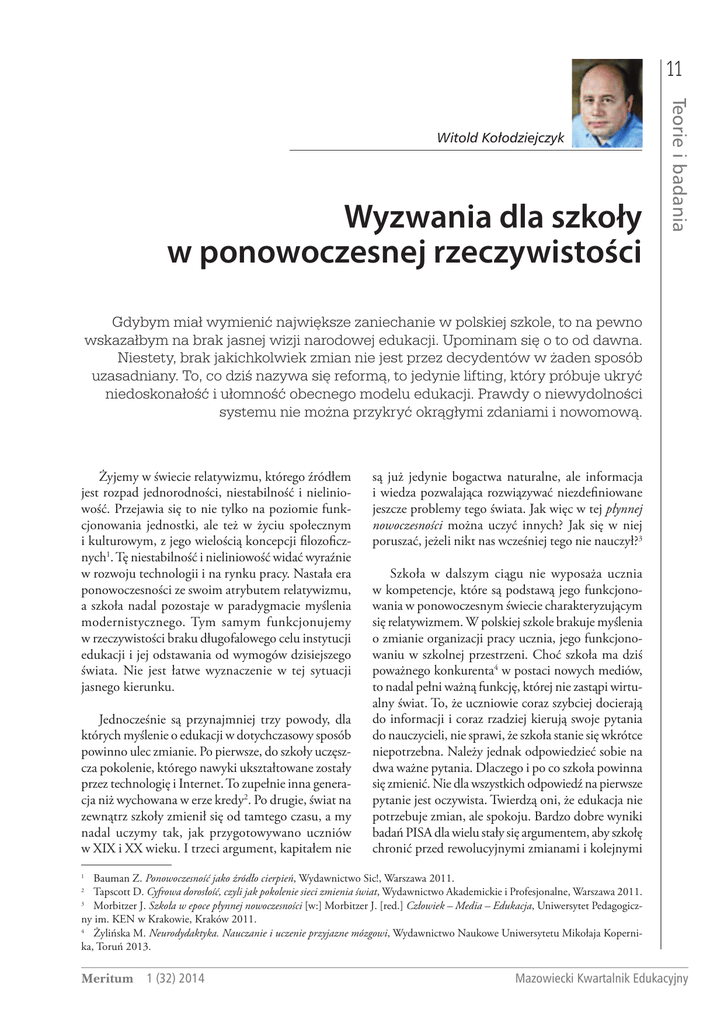 Wyzwania dla szkoły w ponowoczesnej rzeczywistości