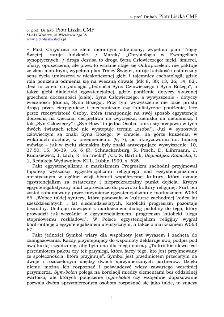 Pakt - prof. Dr hab. Piotr Liszka CMF