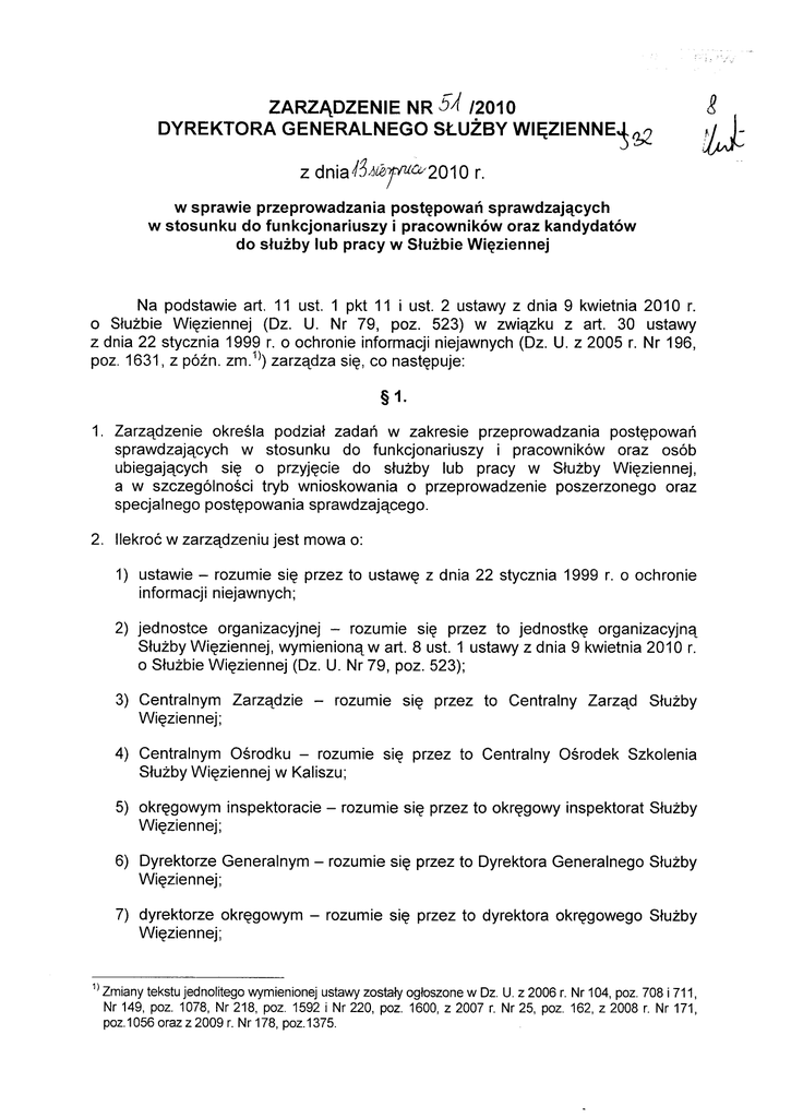 Zarządzenie nr 51/2010 Dyrektora Generalnego Służby