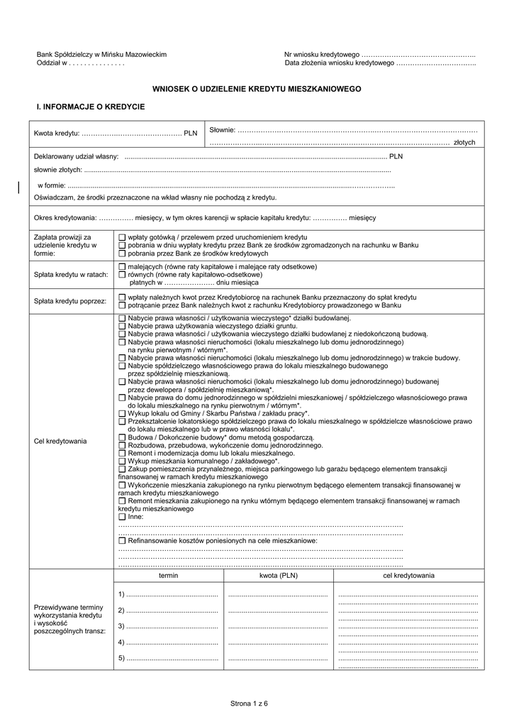 Wniosek o kredyt mieszkaniowy - Bank Spółdzielczy w Mińsku