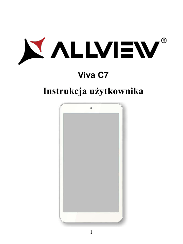 Viva C7 Instrukcja użytkownika 1 1. Aparat przedni 2. Przycisk zasilania 3. Złącze USB 4. Mikrofon 5. Złącze audio 6. Przyciski głośności 7. Złącze karty SD 8. Głośnik 2 Instrukcja użytkownika Viva C7 Wstęp Dziękujemy za zakup naszego produktu. Niniejsza instrukcja obsługi ma pomóc użytkownikowi w szybkim i wygodnym korzystaniu z produktu. Prosimy o uważne zapoznanie się z danym dokumentem. Urządzenie to jest wyspecjalizowanym, przenośnym produktem najwyższej jakości, wyposażonym w szereg unikalnych i zaawansowanych funkcji. Informujemy, że wszelkie zmiany w treści tego dokumentu nie będą podawane do publicznej wiadomości. Producent będzie nadal dostarczać nowych funkcji dla rozwoju tego produktu, jednak nie będzie nigdzie umieszczał oddzielnej informacji w przypadku jakichkolwiek zmian w jego wydajności i funkcjach. Urządzenie jest używane jako mobilne do przechowywania informacji, dlatego producent nie ponosi odpowiedzialności za bezpieczeństwo plików zapisanych na jego dysku. Jeżeli rzeczywista konfiguracja produktu i metody jego zastosowania nie są identyczne z tymi, jakie przedstawiono w poniższej instrukcji obsługi, zaleca się odwiedzić stronę internetową producenta w celu uzyskania aktualnych informacji o produkcie. 3 Podstawowe operacje Włączanie zasilania Podczas, gdy urządzenie będzie wyłączone, naciśnij dłużej przycisk zasilania. Wyłączanie zasilania Podczas, gdy produkt będzie włączony, naciśnij przycisk zasilania przez około 3 sekund, do momentu pojawienia się okienka z opcjami urządzenia, wybierz "Wyłącz", aby wyłączyć urządzenie. Uśpienie Podczas normalnego użytkowania urządzenia, krótko naciśnij przycisk zasilania w celu przejścia w stan hibernacji. Ekran zostanie wyłączony. Ponowne krótkie naciśnięcie przycisku zasilania spowoduje wybudzenie i wznowienie pracy tabletu. Produkt można ustawić tak, aby wszedł w tryb uśpienia automatycznie po żądanym czasie bezczynności. Ponowne uruchamianie urządzenia Jeśli zauważysz, że urządzenie pracuje wolniej niż zwykle przy normalnym użytkowaniu, możesz wyłączyć jego zasilanie, a następnie uruchomić je ponownie w celu zrestartowania system operacyjnego. Wygaszacz ekranu Jeśli nie korzystasz z urządzenia przez określony czas, ani nie używasz jego przycisków, ekran zostanie automatycznie wyłączony. Jeśli konieczna jest dezaktywacja funkcji wygaszacza ekranu, możesz to zrobić wyłączając opcję [Wygaszacz ekranu], znajdującą się zakładce [Wyświetlacz] menu Ustawień. 4 Używanie karty microSD Po podłączeniu tabletu z komputerem, znajdziesz dwa dyski przenośne. Pierwszym z nich jest wbudowany dysk pamięci urządzenia, drugi zaś jest dyskiem karty microSD. Jeśli karta nie jest włożona, drugi dysk nie może zostać otwarty. Urządzenie obsługuje karty microSD o pojemności od 128MB do 64GB. Wkładanie i wyciąganie karty microSD. Wkładanie: Ustaw kartę microSD stroną z napisami skierowaną do góry, następnie lekko wsuń ją w gniazdo karty. Teraz możesz otworzyć zawartość karty microSD na urządzeniu. Wyciąganie: Delikatnie naciśnij kartę microSD, spowoduje to zwolnienie karty z zaczepu. Wyciągnij kartę z gniazda. Uwaga: Czynności wyciągania lub wkładania karty microSD przeprowadzaj na wyłączonym urządzeniu! W przeciwnym razie, może to prowadzić do utraty lub uszkodzenia danych zapisanych na urządzeniu! W przypadku braku włożonej karty microSD, komputer nie będzie w stanie wykonywać operacji odczytu lub zapisu danych na dysku. Akumulator: Urządzenie to wykorzystuje polimerowy akumulator o dużej pojemności. Czas działania tabletu na akumulatorze bez konieczności ładowania zależy od głośności, typów odtwarzanych plików oraz działania akumulatora. Zmień ustawienia wyświetlacza w celu oszczędzania energii. 5 Ładowanie: To urządzenie może być ładowane za pomocą złącza USB lub ładowarki sieciowej: - Wyjmij ładowarkę sieciową z zestawu, podłącz ją do gniazdka sieci niskiego napięcia AC 220V/50Hz (prąd wyjściowy 1A, napięcie wyjściowe 5V~5.2V), następnie podłącz wtyczkę ładowania do złącza USB urządzenia. Ostrzeżenia dotyczące ładowania: Nowy akumulator może byc pusty oraz nienaładowany. Jeśli urządzenie nie jest używane przez dłuższy okres czasu należy je całkowicie naładować co 2-3 miesiące podczas przechowywania. Zasilacz jest kluczowym elementem tabletu, które/y pełni główną role w utrzymywaniu normalnego funkcjonowania urządzenia oraz bezpieczeństwa podczas jego użytkowania. Długoterminowe badania klientów oraz usług posprzedażowych wykazały, że nieprawidłowe funkcjonowanie sprzętu, w wielu przypadkach było spowodowane użyciem nieprawidłowych akcesoriów, w szczególności zasilacza. Korzystanie z niskiej jakości zasilacza powoduje znaczne skrócenie żywotności tabletu, niestabilność napięcia poważnie wpływa na normalną pracę produktu oraz może doprowadzić do jego trwałego uszkodzenia. Używanie niskiej jakości zasilacza może spowodować również zapłon i/lub wybuch akumulatora urządzenia, co zagraża bezpieczeństwu użytkowników. Powrót do głównego interfejsu Znajdując się na dowolnym interfejsie, dotknij ikonę " do ekranu głównego. 6 " , aby powrócić Powrót do poprzedniego interfejsu lub menu Znajdując się na dowolnym interfejsie, dotknij ikonę " przycisk ", kliknij " " , aby powrócić do poprzedniego ekranu lub menu. Możesz również dokonać tego krótko naciskając przycisk" ". Ważne informacje 1. Nie należy używać urządzenia w środowisku wyjątkowo zimnym, gorącym, zapylonym, wilgotnym lub suchym. 2. Nie należy dopuścić do upadku tabletu podczas użytkowania. 3. Naładuj akumulator, gdy: A. Pojawi się symbol pustej baterii; B. Gdy system zostanie automatycznie zamknięty, a następnie będzie szybko się wyłączał podczas prób ponownego uruchomienia urządzen