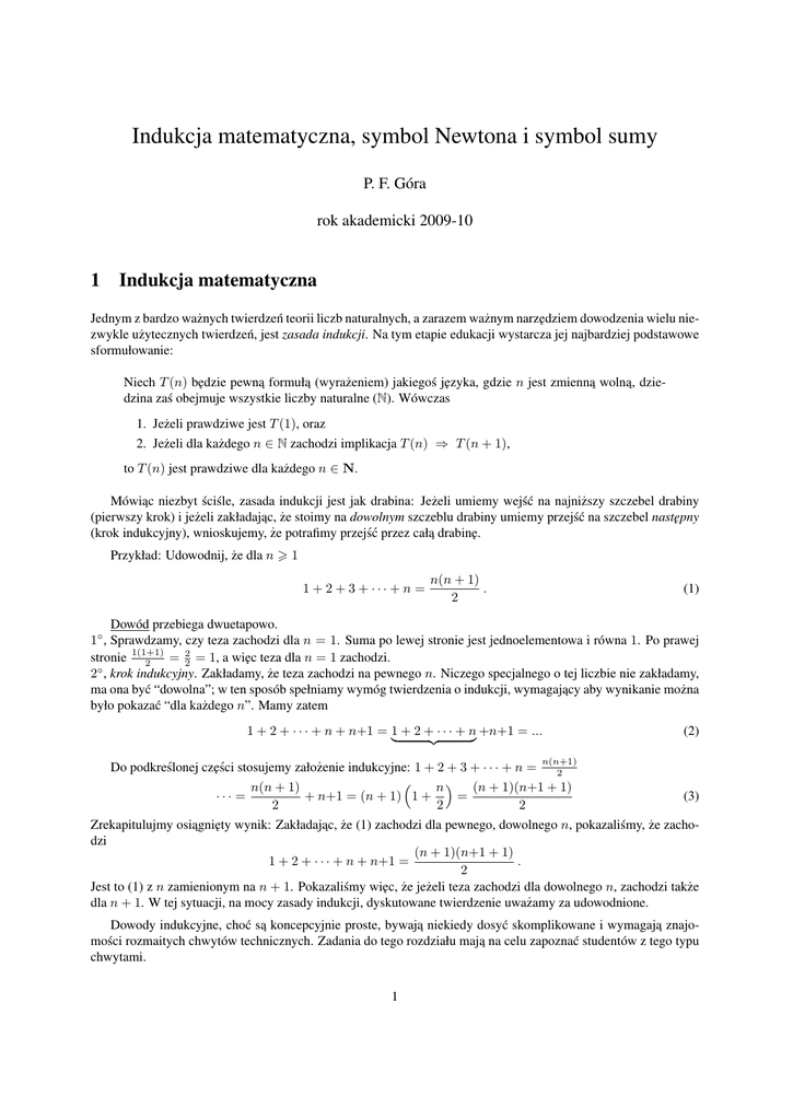 Indukcja matematyczna, symbol Newtona i symbol sumy