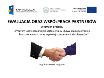 EWALUACJA ORAZ WSPÓŁPRACA PARTNERÓW w ramach projektu „Program unowocześnienia kształcenia w SGGW dla zapewnienia konkurencyjności oraz wysokiej kompetencji absolwentów” mgr Bartłomiej Wojdyło LIDER PROJEKTU KONSORCJANCI INSTYTUT MASZYN MATEMATYCZNYCH PODSTAWA WSPÓŁPRACY Umowa konsorcjum z dnia 01.04.2009 r. zawarta pomiędzy Szkołą Główną Gospodarstwa Wiejskiego w Warszawie – liderem projektu a: • Uniwersytetem Przyrodniczym we Wrocławiu • Uniwersytetem Przyrodniczym w Lublinie • Uniwersytetem Rolniczym im. Hugo Kołłątaja w Krakowie • Uniwersytetem Przyrodniczym w Poznaniu • Instytutem Maszyn Matematycznych w Warszawie CELE PROJEKTU W ZAKRESIE WSPÓŁPRACY PARTNERSKIEJ wdrożenie kształcenia na odległość na kierunku Rolnictwo, upowszechnienie e-learningu jako metody dydaktycznej, wymiana doświadczeń pomiędzy uczelniami w obszarze kształcenia na odległość, stworzenie materiałów edukacyjnych na potrzeby innowacyjnego kierunku studiów – E-rolnictwo. przygotowanie specjalistów do ich korzystania (szkolenia: wdrażanie technologii e-learning, zaawansowana obsługa pakietu oprogramowania komputerowego oraz szkolenie ECDL) Wspólne działania partnerów dążą do otwarcia szerokich możliwość kształcenia zdalnego. REZULTATY WSPÓLNYCH DZIAŁAŃ uruchomienie studiów e-rolnictwo – innowacyjnej formy studiów wspomaganych e-learningiem, którego podstawą są wykłady, testy i Qiuzy przygotowane dla 53 przedmiotów studiów inżynierskich oraz magisterskich. Ich opracowania podjęli się najlepsi specjaliści w swoich dziedzinach również z uczelni partnerskich. szkolenia kadry dydaktycznej - wykorzystanie najnowszych technik kształcenia za pośrednictwem platformy e-learningowej umożliwiło beneficjentom szkolenie wdrażanie technologii e-learning. 84 godzinny kurs zorganizowano dla 55 osób z uczelni partnerskich. wizyty studyjne - dające możliwość zdobycia doświadczeń we wdrażaniu i stosowaniu technologii ICT. Pozwoliły uczelniom partnerskim na „podpatrzenie” i przeniesienie na rodzimy grunt dobrych praktyk w nauczaniu na odległość. szkolenia ECDL – wykorzystanie zasobów wiedzy, doświadczenia oraz profesjonalnej kadry Instytutu Maszyn Matematycznych do realizacji programu szkoleniowego z zakresu umiejętności komputerowych dla nauczycieli akademickich oraz pracowników SGGW. Jak to wygląda u nas?? za działanie oraz aktywizację do nauczania na odległość odpowiada Centrum Kształcenia na Odległość kursy prowadzone w systemie kształcenia na odległość, powstają z wykorzystaniem platformy Moodle ( podobnie jak w projekcie) aktualnie kursy e-learningowe prowadzone są na 4 wydziałach, łącznie z 23 przedmiotów na platformie kształcenia na odległość obecnie zarejestrowanych jest 1335 studentów Uniwersytetu Przyrodniczego, natomiast kursy metodą blended learning ukończyło już ponad 3300 studentów. dzięki wymianie dobrych praktyk i doświadczeń, a także dzięki uczestnictwu pani Joanny Markowskiej w wyjeździe studyjnym do Finlandii, zaobserwowane na tamtejszej uczelni rozwiązania pozwoliły na zastosowanie ich na macierzystej uczelni i przyczyniły się do upowszechnienia e-learningu jako formy kształcenia. Wyniki ewaluacji Projektu „Program unowocześnienia kształcenia w SGGW dla zapewnienia konkurencyjności oraz wysokiej kompetencji absolwentów” WSTĘP W trakcie realizacji Projektu przeprowadzono działania ewaluacyjne następujących kursów i aktywności szkoleniowych: • Kurs „Wdrażanie technologii e-learning” • Kurs „ECDL” • Szkolenie „Pracownicy SGGW wobec studentów niepełnosprawnych” • Kurs „Zaawansowana obsługa pakietu komputerowego” • Kursy wyrównawcze z matematyki i fizyki • Studia „e-Rolnictwo” • Szkolenie „Autopromocja na rynku pracy” • Staże wakacyjne FUNKCJA EWALUACJI W PROJEKCIE Głównym zadaniem ewaluacji powyższych kursów było sprawdzenie, czy kurs spełniał oczekiwania uczestników w zakresie podnoszenia kompetencji z dziedziny, której dotyczył. Ponadto, w ankietach zawarte były pytania o kwestie technicznoorganizacyjne, dzięki czemu istniała szansa na poprawę jakości każdej kolejnej edycji organizowanego szkolenia, kursu itp. „WDRAŻANIE TECHNOLOGII E-LEARNING” Przeprowadzono 11 edycji kursu, po każdej edycji uczestnicy wypełniali ankietę ewaluacyjną. W sumie ankiety wypełniły 142 osoby (70 kobiet oraz 72 mężczyzn). Czy Pana/Pani zdaniem wiedza zdobyta w trakcie kursu jest/będzie przydatna w pracy zawodowej? 2% 6% 34% Tak, jest/będzie bardzo przydatna Tak, jest/będzie przydatna 58% Raczej nie jest/będzie przydatna Trudno powiedzieć/nie potrafię tego ocenić KURS „ECDL” Kurs ECDL zorganizowany był w trzech edycjach w okresie od 2009 do 2012 roku. Wyniki ankiety ex-post oparto na grupie 39 osób (25 kobiet i 14 mężczyzn). Czy Pana/Pani zdaniem wiedza zdobyta w trakcie kursu ECDL jest/będzie przydatna w pracy zawodowej? 28% Tak, jest/będzie bardzo przydatna 72% Tak, jest/będzie przydatna „PRACOWNICY SGGW WOBEC STUDENTÓW NIEPEŁNOSPRAWNYCH” Podczas 22 edycji tego jednodniowego szkolenia w badaniu wzięło udział w sumie 889 respondentów (55% kobiet i 45% mężczyzn) Czy Pana/Pani zdaniem wiedza zdobyta w trakcie szkolenia jest/będzie przydatna w Pana/Pani pracy? Tak, jest/będzie przydatna 2% 9% 10% Tak, jest/będzie bardzo przydatna 54% 25% Trudno powiedzieć/nie potrafię tego ocenić W ogóle nie jest/będzie przydatna Raczej nie jest/będzie przydatna 7% 4% Nie poczyniłem(łam) znaczących postępów Trudno powiedzieć/nie potrafię tego ocenić 34% Spełniłem(łam) wszystkie swoje oczekiwania w stosunku do kursu 35% Nabrałem(łam) pewności, że poradzę sobie na studiach Dowiedziałem(łam) się jak w praktyce wykorzystać nabytą wiedzę 80% 70% 60% 50% 40% 30% 20% 10% 0% Usystematyzowałem(łam) zdobytą wiedzę ZAJĘCIA WYRÓWNAWCZE Z MATEMATYKI I FIZYKI Na prze