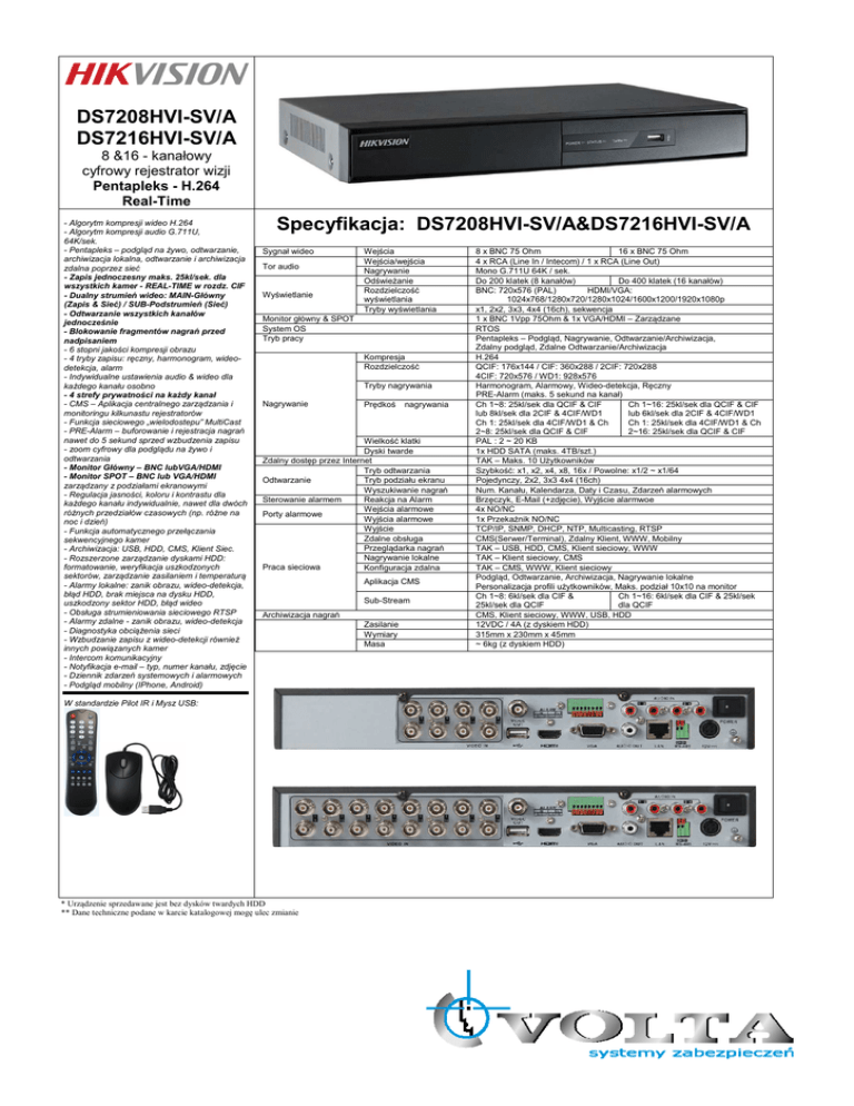 Karta Katalogowa DS7208-7216HVI-SVA