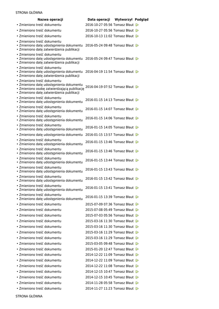STRONA GŁÓWNA Nazwa operacji Data operacji Wytworzył Podgląd • Zmieniono treść dokumentu 2016-10-27 05:56 Tomasz Błaut • Zmieniono treść dokumentu 2016-10-27 05:56 Tomasz Błaut • Zmieniono treść dokumentu 2016-10-13 11:02 Tomasz Błaut • Zmieniono treść dokumentu • Zmieniono datę udostępnienia dokumentu 2016-05-24 09:48 Tomasz Błaut • Zmieniono datę zatwierdzenia publikacji • Zmieniono treść dokumentu • Zmieniono datę udostępnienia dokumentu 2016-05-24 09:47 Tomasz Błaut • Zmieniono datę zatwierdzenia publikacji • Zmieniono treść dokumentu • Zmieniono datę udostępnienia dokumentu 2016-04-19 11:54 Tomasz Błaut • Zmieniono datę zatwierdzenia publikacji • Zmieniono treść dokumentu • Zmieniono datę udostępnienia dokumentu 2016-04-19 07:52 Tomasz Błaut • Zmieniono osobę zatwierdzającą publikację • Zmieniono datę zatwierdzenia publikacji • Zmieniono treść dokumentu 2016-01-15 14:13 Tomasz Błaut • Zmieniono datę udostępnienia dokumentu • Zmieniono treść dokumentu 2016-01-15 14:07 Tomasz Błaut • Zmieniono datę udostępnienia dokumentu • Zmieniono treść dokumentu 2016-01-15 14:06 Tomasz Błaut • Zmieniono datę udostępnienia dokumentu • Zmieniono treść dokumentu 2016-01-15 14:05 Tomasz Błaut • Zmieniono datę udostępnienia dokumentu • Zmieniono datę udostępnienia dokumentu 2016-01-15 13:57 Tomasz Błaut • Zmieniono treść dokumentu 2016-01-15 13:46 Tomasz Błaut • Zmieniono datę udostępnienia dokumentu • Zmieniono treść dokumentu 2016-01-15 13:46 Tomasz Błaut • Zmieniono datę udostępnienia dokumentu • Zmieniono treść dokumentu 2016-01-15 13:44 Tomasz Błaut • Zmieniono datę udostępnienia dokumentu • Zmieniono treść dokumentu 2016-01-15 13:43 Tomasz Błaut • Zmieniono datę udostępnienia dokumentu • Zmieniono treść dokumentu 2016-01-15 13:42 Tomasz Błaut • Zmieniono datę udostępnienia dokumentu • Zmieniono treść dokumentu 2016-01-15 13:41 Tomasz Błaut • Zmieniono datę udostępnienia dokumentu • Zmieniono treść dokumentu 2016-01-15 13:39 Tomasz Błaut • Zmieniono datę udostępnienia dokumentu • Zmieniono treść dokumentu 2015-07-09 07:36 Tomasz Błaut • Zmieniono treść dokumentu 2015-07-08 05:49 Tomasz Błaut • Zmieniono treść dokumentu 2015-07-03 05:56 Tomasz Błaut • Zmieniono treść dokumentu 2015-03-16 11:30 Tomasz Błaut • Zmieniono treść dokumentu 2015-03-16 11:30 Tomasz Błaut • Zmieniono treść dokumentu 2015-03-16 11:29 Tomasz Błaut • Zmieniono treść dokumentu 2015-03-16 11:29 Tomasz Błaut • Zmieniono treść dokumentu 2015-03-05 09:48 Tomasz Błaut • Zmieniono treść dokumentu 2015-01-20 12:47 Tomasz Błaut • Zmieniono treść dokumentu 2014-12-22 11:09 Tomasz Błaut • Zmieniono treść dokumentu 2014-12-22 11:09 Tomasz Błaut • Zmieniono treść dokumentu 2014-12-22 11:08 Tomasz Błaut • Zmieniono treść dokumentu 2014-12-15 10:47 Tomasz Błaut • Zmieniono treść dokumentu 2014-12-15 10:45 Tomasz Błaut • Zmieniono treść dokumentu 2014-11-28 05:58 Tomasz Błaut • Zmieniono treść dokumentu 2014-11-27 11:23 Tomasz Błaut STRONA GŁÓWNA STRONA GŁÓWNA • Zmieniono treść dokumentu 2014-11-27 11:21 Tomasz Błaut • Zmieniono treść dokumentu 2014-11-27 11:21 Tomasz Błaut • Zmieniono treść dokumentu 2014-11-25 12:27 Tomasz Błaut • Zmieniono treść dokumentu 2014-09-26 13:12 Tomasz Błaut • Zmieniono treść dokumentu 2014-09-26 13:02 Tomasz Błaut • Zmieniono treść dokumentu 2014-09-26 13:01 Tomasz Błaut • Zmieniono treść dokumentu 2014-08-27 14:08 Tomasz Błaut • Zmieniono treść dokumentu 2014-06-27 09:02 Tomasz Błaut • Zmieniono treść dokumentu 2014-06-27 08:51 Tomasz Błaut • Zmieniono treść dokumentu 2014-03-07 12:36 Tomasz Błaut • Zmieniono treść dokumentu 2014-03-05 10:24 Tomasz Błaut • Zmieniono treść dokumentu 2013-06-14 13:27 Tomasz Błaut • Zmieniono treść dokumentu 2013-06-14 13:24 Tomasz Błaut • Zmieniono treść dokumentu 2013-06-14 13:23 Tomasz Błaut • Zmieniono treść dokumentu 2013-06-14 13:21 Tomasz Błaut • Zmieniono treść dokumentu 2013-06-14 12:18 Tomasz Błaut • Zmieniono treść dokumentu 2013-06-11 08:03 Tomasz Błaut • Zmieniono treść dokumentu 2013-05-22 09:27 Tomasz Błaut • Zmieniono treść dokumentu 2013-05-21 14:18 Tomasz Błaut • Zmieniono treść dokumentu 2013-02-22 12:20 Tomasz Błaut • Zmieniono treść dokumentu 2013-02-22 12:19 Tomasz Błaut • Zmieniono treść dokumentu 2013-02-22 12:19 Tomasz Błaut • Zmieniono treść dokumentu 2013-02-12 11:49 Tomasz Błaut • Zmieniono treść dokumentu 2013-02-11 14:21 Tomasz Błaut • Zmieniono treść dokumentu 2013-02-11 14:20 Tomasz Błaut • Zmieniono treść dokumentu 2013-02-11 14:16 Tomasz Błaut • Zmieniono treść dokumentu 2013-02-11 14:14 Tomasz Błaut • Zmieniono treść dokumentu 2013-01-23 06:52 Tomasz Błaut • Zmieniono treść dokumentu 2013-01-23 06:51 Tomasz Błaut • Zmieniono treść dokumentu 2013-01-23 06:51 Tomasz Błaut • Zmieniono treść dokumentu 2013-01-23 06:48 Tomasz Błaut • Zmieniono treść dokumentu 2013-01-23 06:39 Tomasz Błaut • Zmieniono treść dokumentu 2012-11-14 13:58 Tomasz Błaut • Zmieniono treść dokumentu 2012-11-14 13:55 Tomasz Błaut • Zmieniono treść dokumentu 2012-11-14 13:54 Tomasz Błaut • Zmieniono treść dokumentu 2012-11-14 13:53 Tomasz Błaut • Zmieniono treść dokumentu 2012-11-14 13:53 Tomasz Błaut • Zmieniono treść dokumentu 2012-11-14 13:51 Tomasz Błaut • Zmieniono treść dokumentu 2012-11-14 13:49 Tomasz Błaut • Zmieniono treść dokumentu 2012-07-18 08:10 Tomasz Błaut • Zmieniono treść dokumentu 2011-12-20 14:00 Tomasz Błaut • Zmieniono treść dokumentu 2011-12-20 13:56 Tomasz Błaut • Zmieniono treść dokumentu 2011-12-20 13:54 Tomasz Błaut • Zmieniono treść dokumentu 2011-12-20 13:54 Tomasz Błaut • Zmie