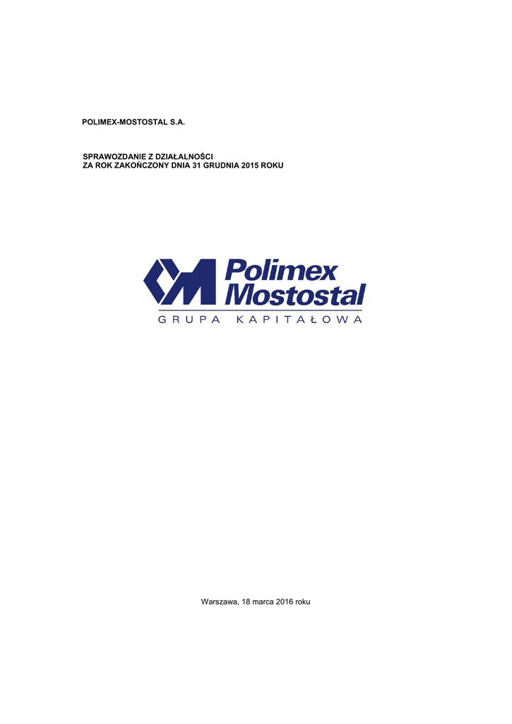 Sprawozdanie z działalności Polimex-Mostostal SA